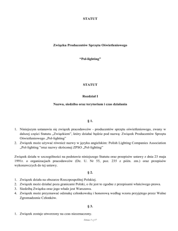 STATUT Związku Producentów Sprzętu Oświetleniowego - Pol