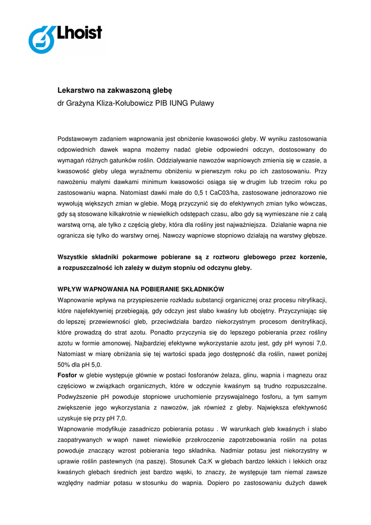 Lekarstwo na zakwaszoną glebę dr Grażyna Kliza