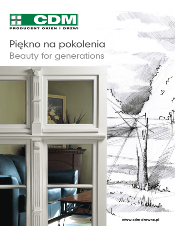 Piękno na pokolenia Beauty for generations www.cdm-drewno.pl Szanowni Państwo! Dear All Jesteśmy przekonani, że widoki z Państwa okien są wspaniałe. Takie obrazy wymagają równie pięknych ram. To jest właśnie pierwszy, jakże ważny argument, na skorzystanie z naszej oferty. Produkowane przez nas drewniane okna i drzwi są eleganckie, stylowe oraz znakomicie współgrają z otoczeniem, nadają klasę domom i mieszkaniom, podkreślają urodę budynków, tworzą harmonijną całość w zabytkowych kamienicach i pałacach. Z drewna można zrobić wiele wyjątkowych, pięknych rzeczy, to piękno może być również funkcjonalne. Każdą wizję, każdy kształt, wzór, najciekawsze kolory i odcienie farb, skomplikowaną ornamentację pomogą dobrać doświadczeni projektanci i technolodzy, którzy mogą konsultować się bezpośrednio z Państwa architektem lub inwestorem zastępczym. Dbamy o najwyższą jakość naszych wyrobów. Podstawą jakości jest drewno. Drewniane okna i drzwi zapewniają komfort, gwarantują doskonałe zabezpieczenie przed zimnem, bezpieczeństwo i wyciszenie wnętrz. Do produkcji używamy zarówno rodzimego dębu, sosny, świerku, modrzewia, jak i egzotycznego azjatyckiego drewna meranti. W naszych wyrobach stosujemy zawiasy, zamki i okucia najlepszych światowych producentów, podnoszą one trwałość produktów. Pamiętamy o ekologii, używane przez nas nowoczesne technologie sprawiają, że zarówno produkcja, jak i produkty finalne są przyjazne dla środowiska. Drewniane okna i drzwi produkujemy od 2000 roku, długoletnie doświadczenie, sprawna, fachowa załoga, terminowość dostaw, wieloletnie gwarancje to argumenty, które przemawiają za tym, by skorzystali Państwo z naszej oferty. Sprawdź nas, poznaj nasz zgrany zespół, przyjedź do nas... We are convinced, that the views from Your windows are beautiful. Such images require equally gorgeous framing. This is the first and important argument for using our products. The wooden windows and doors manufactured at our company are elegant, stylish and they exquisitely harmonise with their surroundings, giving a new dimension of class to homes and houses, complementing the design of buildings, forming a harmonious unity with historic tenements and palaces. Wood serves as a material for making many unique and beautiful items and this beauty can also be functional. Every shape, pattern, elaborate ornament, the most interesting colour and shade of paint imaginable, can be made real with the help of our experienced designers and technicians, who may consult directly with Your architect or substitute investor. We care for the highest quality of our products. The basis for their quality is the wood. Wooden windows and doors provide comfort, are a guarantee of safety, noise cancellation and perfect isolation from cold. In the manufacturing process we use our local oak, pine, spruce and larch wood, as well as the exotic, Asian meranti wood. We use hinges, locks and fittings made by the most acclaimed manufacturers in the world, which raises the durability of our products. We also take great care of the environment, and the modern technologies used at our company, make the manufacturing process and the final products environment friendly. We have been producing wooden doors and windows since the year 2000 and we take pride in our competent and professional staff, prompt delivery and long-standing warranty – arguments which should convince You to take interest in our offer. Find out more about us, get to meet our well-knit team and come visit us… Zapraszamy, zespół CDM 2 The CDM Team 3 Pakiet Szybowy Pakiet szybowy unit glass System okienny window system Soft-line 68 Soft-line 78 Soft-line 88 soft-line 6 soft-line retro 8 retro hard-line 10 hard-line drewno-alu 12 Retro 68 Retro 78 Retro 88 Ug=1,1 z ciepłą ramką* Ug=0,7 z ciepłą ramką* Uw = 1,28 Uw = 1,01 Ug=0,6 z ciepłą ramką* – Uw = 1,24 Uw = 0,97 Uw = 0,91 – – Uw = 1,28 Uw = 1,01 – – – Uw = 0,87 Uw = 0,81 – Uw = 1,24 Uw = 0,97 Uw = 0,91 – Ug=0,5 z ciepłą ramką* – – Uw = 0,87 Uw = 0,81 wood-alu skrzynkowe hard-line 68 16 angielskie hard-line 78 uk market okiennice 18 shutters drzwi 20 entrance doors winter gardens drewno-alu WOOD-ALU 78 fasady 24 facades 4 hard-line 88 drewno-alu WOOD-ALU 68 ogrody zimowe 22 Doskonałe parametry izolacji termicznej zagwarantowane dzięki jedno- lub dwukomorowym pakietom szybowym, współczynnik przenikania ciepła Ug do 0,5 W/m2K. Unit glass Perfect heat insulation parameters are guaranteed by double or triple glazing, heat transfer coefficient Ug up to 0.5 W/m²K. Różnorodność profili OUR TECHNOLOGY silikon Uszczelnia połączenie pakietu szybowego z ramą okna, kolor silikonu jest dopasowany do koloru okna. Silicone Insulates the joint of glass and window frame. Silicone colour matches the window colour. Poszczególne profile dają możliwość doboru okien do charakteru budynku lub wnętrza. Variety of profiles Many types of profiles give us the possibility to choose the right window for the character of the style of the building or interior. SOFT-line Retro okapnik naskrzydłowy Ochronna listwa aluminiowa montowana na skrzydle okiennym, dostępna w wielu kolorach, stosowana w profilach Soft-line i Hard-line. Sash drip rail An aluminium protective rail for sash window available in many colours, used in Soft-line and Hard-line profiles. Hard-line ramka międzySzybowa SOFT-line Aluminiowa lub opcjonalnie tworzywowa ciepła ramka międzyszybowa, dodatkowo poprawiająca parametry cieplne okna. Edge spacers Aluminium or optionally plastic warm edge spacers additionally improve the window’s heat insulation parameters. * with warm edge spacers Uw = 1,28 Uw = 1,01 – Uw = 1,24 Uw = 0,97 Uw = 0,91 – – – – Uw = 0,87 Uw = 0,81 Wykonane są z termoplastycznych elastomerów. Istnieje możliwość zastosowania potrójnego systemu uszczelnienia; uszczelki dostępne są w kolorze bi