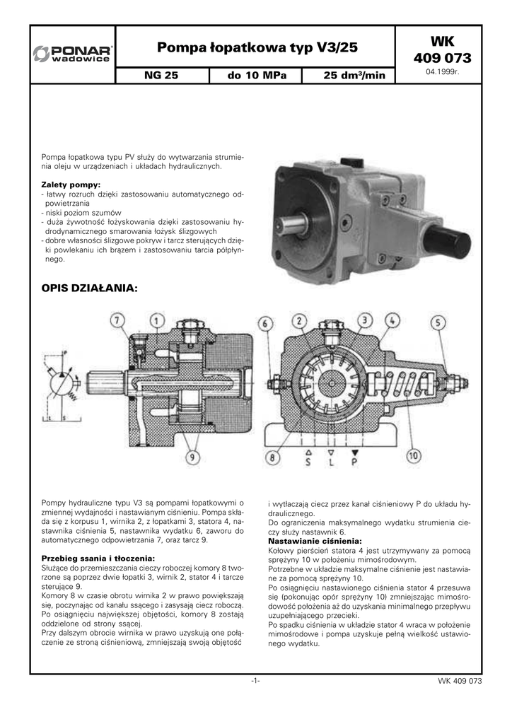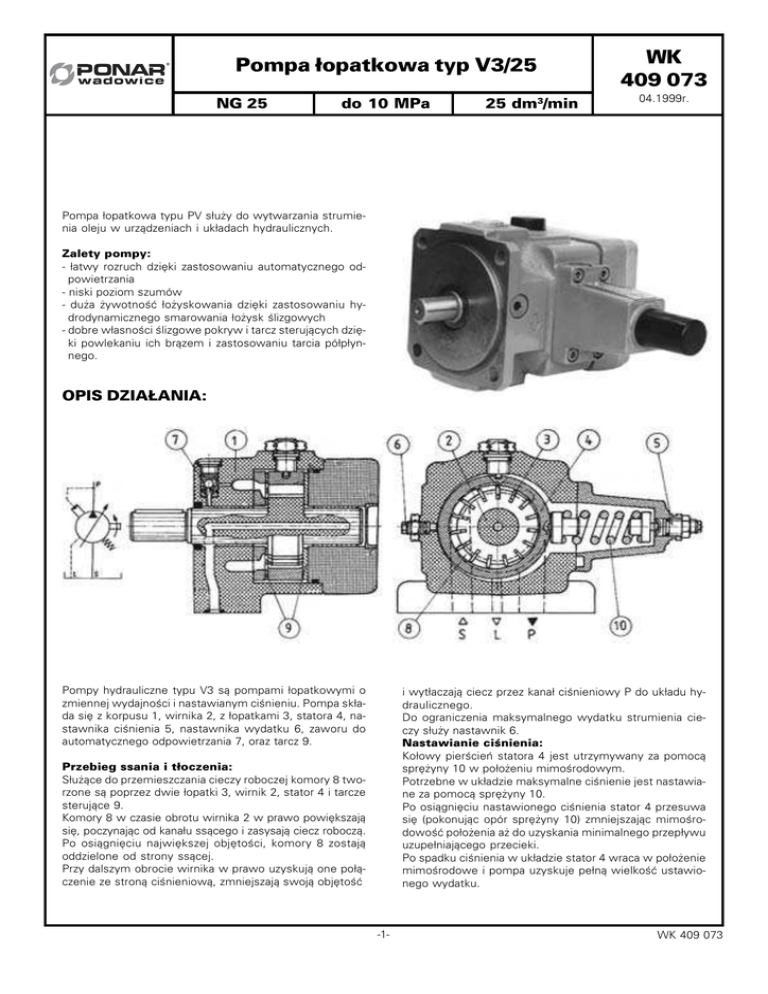 zmiennej wydajności i nastawianym ciśnieniu. Pompa skła−