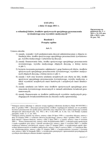 USTAWA z dnia 12 maja 2011 r. o refundacji leków, środków