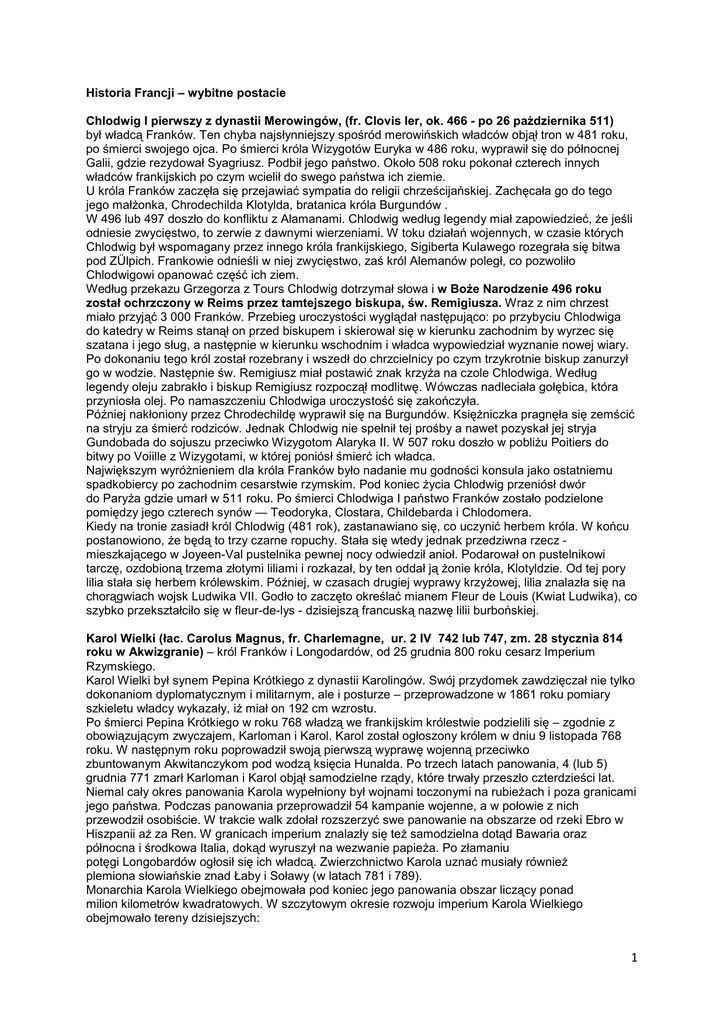 do Paryża gdzie umarł w 511 roku. Po śmierci Chlodwiga I państwo Franków zostało podzielone