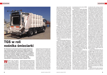 CIĘŻARÓWKI CIĘŻARÓWKI TGS w roli nośnika śmieciarki W obszarze 3-osiowych podwozi pod zabudowy typu śmieciarka oferta koncernu MAN należy do relatywnie bogatych. Potencjalni odbiorcy mogą wybierać pomiędzy lżejszymi, tańszymi i napędzanymi przez słabsze silniki wersjami z średniotonażowego typoszeregu TGM oraz cięższymi, droższymi i napędzanymi przez mocniejsze silniki odmianami z typoszeregu klasy ciężkiej TGS. naszym kraju, jak dotychczas, co ciekawe, większym wzięciem cieszą się wcale nie 3-osiowi przedstawiciele serii TGM, chociaż spółka importująca MAN Truck&Bus Polska dostarczyła je już w liczbie kilkunastu egzemplarzy, lecz 3-osiowi reprezentanci linii TGS. Żeby było jeszcze ciekawej, w kategorii 2-osiowych podwozi W 8 sytuacja prezentuje się zgoła odmiennie, gdyż w dostawach dla służb komunalnych przeważają auta z rodziny TGM. Zdaniem Jacka Stelmacha, dyrektora do spraw sprzedaży samochodów specjalnych w rodzimym przedstawicielstwie koncernu, taka sytuacja stanowi wypadkową kilku zasadniczych przyczyn. Po pierwsze 3-osiowy TGS cechuje się wyższą technicznie dopuszczalną masa całkowitą, wynikłą m.in. z większej nośności tylnych osi. A przypadku zastosowań typu śmieciarka, gdzie dochodzi do częstych chwilowych i dłuższych przeciążeń ostatnich osi, taka zaleta jest nie do przecenienia. Po drugie różnica w cenie pomiędzy 3-osiowym TGM z najmocniejszym silnikiem i 3-osiowym TGS z najsłabszym silnikiem występuje, ale dla przeważanej części odbiorców jej znaczenie nie jest zbyt duże. Ponadto 3-osiowe TGS również charakteryzują się bardzo dobrą manewrowością i są napędzane przez zdecydowanie mocniejsze silniki. Przy czym kwestia de facto wcale nie dotyczy mocy maksymalnych, ponieważ, porównując najmocniejszy TGM z najsłabszym TGS, przewaga TGS nie zalicza się do dużych, lecz maksymal- ciężarówki i autobusy 3/2012 nego momentu obrotowego, w autach użytkowych zdecydowanie ważniejszego, niż moc. Po prostu najsłabszy D20 w TGS generuje zdecydowanie wyższy moment obrotowy w niższym i szerszym zakresie prędkości obrotowych, niż najmocniejszy D08 w TGM. Pewnych prawideł zwyczajnie nie da się oszukać. Z 10,518 litra pojemności D20 bez problemu można uzyskać więcej niutometrów w szerszym i niższym zakresie prędkości obrotowych niż z 6,871 litra D08. Powyższe wpływa oczywiście na trwałość poszczególnych rodzajów jednostek. Także ewentualne różnice w zużyciu paliwa na korzyść silników o mniejszej pojemności nie są zbyt duże. Podstawowym 3-osiowym wariantem z serii TGS w ofercie MAN Truck&Bus Polska dla służb komunalnych pod zabudowy typu śmieciarka jest samochód o symbolu 28.320 6x2-4 BL. Zgodnie z tym oznaczeniem cechuje się on maksymalną masą całkowitą 28 000 kg, 320-konnym silnikiem, układem napędowym 6x2, kołami ostatniej, trzeciej osi sterowanymi przeciwbieżnie w stosunku do przednich kół kierowanych oraz mieszanym zawieszeniem – z przodu mechanicznym, z tyłu powietrznym. Dopuszczalna masa całkowita, technicznie równa 28 000 kg i kodeksowo ograniczona, wynika z dopuszczalnych technicznych nacisków na poszczególne osie: przednią – 8000 kg (7500 kg), środkową – napędzaną 13 000 kg (10 00011500 kg) i trzecią – tylną 9000 kg (7500 kg). Silnik o symbolu D2066LF43 ma 6 cylindrów w rzędzie, turbodoładowanie, chłodzenie powietrza doładowującego, system wtrysku wysokociśnieniowego common rail, 235 kW mocy maksymalnej, 1600 Nm maksymalnego momentu obrotowego oraz spełnia wymogi normy czystości spalin Euro 5 dzięki układowi selektywnej redukcji katalitycznej SCR. Inne jego bazowe wyróżniki to: układ OBD2, chłodnica wody i chłodnica powietrza doładowującego dostosowane do pracy w niskich temperaturach otoczenia (do -35°C), wentylator ze sprzęgłem wiskotycznym, elektroniczny układ regulacji pracy EDC, podgrzewany filtr paliwa, hamulec silnikowy EVB oraz 1-cylindrowa sprężarka powietrza 360 ccm. Do tego dochodzą dodatkowy filtr paliwa podgrzewany z separatorem wody marki SEPAR oraz moduł sterujący ciężarówki i autobusy 3/2012 do zewnętrznej wymiany danych (KSM), także dla zabudowy. Za przenoszenie napędu odpowiadają: jednotarczowe, suche sprzęgło MFZ 430 i 16-biegowa, mechaniczna skrzynia przekładniowa ZF 16S222DD, współpracująca z pojedynczym mostem HY-1350. Most ten to oś hipoidalna, o przełożeniu i=3,36, z blokadą mechanizmu różnicowego. Zawieszono ją przy pomocy poduszek powietrznych, sterowanych przez elektroniczny układ kontroli pracy zawieszenia pneumatycznego ECAS, z regulacją wysokości zawieszenia. Również zawieszenie tylnej osi jest powietrzne, niemniej wykorzystuje ono nie cztery, jak w przypadku środkowej osi napędzanej, lecz dwie poduszki pneumatyczne. Ta tylna, ostatnia oś jest wleczona, kierowana, podnoszona, o symbolu NOL-09. Natomiast oś przednia, wygięta, o symbolu VOK-09 otrzymała zawieszenie mechaniczne w postaci parabolicznych resorów piórowych o nośności 8000 kg. Poza tym w zawieszeniu z przodu i z tyłu zamontowano po stabilizatorze, a tylne zawieszenie powietrzne, ze względu na charakter zabudowy, dostosowano do wysoko umieszczonego środka ciężkości. Nieco inny jest też rozmiar założonego ogumienia. Na osiach przedniej i środkowej – napędzanej znajdują się opony, z przodu pojedyncze, w środku podwójne, o rozmiarze 315/80R22,5, podczas gdy oś trzecią, ostatnią, wleczoną zaopatrzono w pojedyncze ogumienie o rozmiarze 385/65R22,5. Wszystkie opony, niezależnie od lokalizacji, charakteryzują się nośnością zwiększoną o 10%, dla zastosowań komunalnych. W związku z faktem, iż załogi śmieciarek w trakcie dnia nie pokonują zbyt dużych dystansów, a wyjątkowo ważne są dla nich łatwość wsiadania i wysiadania, komunalny TGS ma instalowaną krótką, dzienną kabinę o symbolu M. Jej szerokość wynosi 2240 mm, długość 1880 mm, 