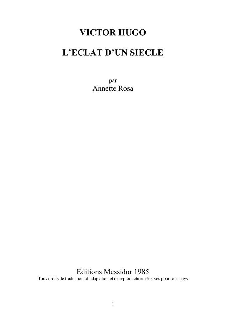 VICTOR HUGO L’ECLAT D’UN SIECLE par Annette Rosa Editions Messidor 1985 Tous droits de traduction, d’adaptation et de reproduction réservés pour tous pays 1 « Gagnez à la loterie, vous voilà un habile homme. Qui triomphe est vénéré… Ayez de la chance, vous aurez le reste ; soyez heureux, on vous croira grand. En dehors des cinq ou six exceptions immenses qui font l’éclat d’un siècle, l’admiration contemporaine n’est guère que myopie. Dorure et or. (…) Les hommes confondent avec les constellations de l’abîme les étoiles que font dans la vase molle du bourbier les pattes des canards. » Les Misérables I, 1, 12 2 1 L’ENFANCE DE L’ART 3 CHAPITRE I Le père ou le parrain 1802-1812 « Le petit qui criait au tome III »1 Qu’est-ce qui avait bien pu pousser en 1796 la Bretonne Sophie, « chaude Vendéenne », vers le capitaine Hugo, envoyé précisément pour réprimer, au nom du gouvernement révolutionnaire, la rébellion des chouans ? Etait-ce la gaîté énergique et chaleureuse de ce soldat costaud et sentimental qui avait séduit la jeune fille pudique et réservée ? Son « humanité » dans une guerre civile que les nécessités rendaient de part et d’autre inhumaine ? Un désir de sécurité dans cette tourmente ? Nous ne le serons sans doute jamais. Sophie écrivait peu et brièvement. A Paris où s’installe pour peu de temps le jeune ménage, Hugo devient le familier du colonel Lahorie. Cultivé, grave, pensif, il plaît à Sophie déjà fatiguée de l’exubérance de Léopold. Cette amitié grandira. En attendant, les hasards de la guerre, les déplacements, les grossesses, vont occuper Sophie. Deux fils naissent : Abel en 1798, Eugène en 1800. En 1802, les Hugo espèrent enfin une fille. Lahorie doit en être le parrain Ŕ parrain civil, car les églises ne sont qu’entrouvertes et l’on n’administre pas officiellement de baptêmes religieux. En fait de Victorine, c’est encore un garçon qui naît à Besançon le 26 février 1802 : VictorMarie, si chétif et si fripé et donnant « de si faibles signes d’existence que l’accoucheur déclara qu’il ne vivrait pas »2. L’enfant « réputé mort-né » vivra quatre-vingt-trois ans ; les signent mentent parfois. D’autres disent le vrai : en lui donnant son nom, Lahorie donnait un peu de sa destinée au petit Victor : la proscription. « Bonaparte, l’oncle, tua le parrain. Bonaparte, le neveu, exila le filleul. »3 A un an, Victor n’est pas un bel enfant. « Sa petite tête qu’il ne portait pas encore, tombait sur son épaule ; il était tout rechigné et loin que sa figure fût un rire, on y voyait de temps en temps quelques larmes plaintives. »4 Sa mère n’est plus là depuis novembre. Laissant le commandant Hugo muté à Marseille se débrouiller avec les trois enfants, elle est partie à Paris, pour demander à Joseph Bonaparte de consolider la carrière de Léopold menacée par des supérieurs mesquins. Elle y revoit Lahorie, alors à demi disgracié et déjà au bord de comploter contre le Premier Consul. Le séjour de Sophie à Paris se prolonge Ŕ huit mois : du neuvième au seizième mois de Victor Ŕ malgré les lettres pressantes de Léopold, obligé de s’établir en Corse, puis à l’île d’Elbe, avec sa demi-brigade et un peu embarrassé d’une progéniture que l’absence maternelle attriste certainement, affecte profondément peut-être. « Ton Victor entre, il m’embrasse. Je l’embrasse pour toi et lui fais baiser cette place pour que tu y recueilles au moins dans ton éloignement quelque chose de lui. J’y joins aussi le baiser le plus ardent. Je viens de lui donner du bonbon, dont j’ai toujours soin d’avoir une provision dans mon tiroir. Il s’en va tristement avec Nicolas en le suçant. »5 Léopold se consolait, sans doute plus aisément que Victor toujours pleurnichant derrière ses deux gaillards de frères, en compagnie d’une certaine Catherine Thomas. Sophie rentra, mais 1 Les Misérables, IIIe partie, Livre 8, Chap. 22. Victor Hugo raconté par Adèle Hugo. 3 Victor Hugo raconté par Adèle Hugo. 4 Victor Hugo raconté par Adèle Hugo. 5 Victor Hugo raconté par Adèle Hugo. 2 4 la vie commune ne dura que quatre mois. Fut-ce jalousie sincère, constat d’incompatibilité définitive, refus du vagabondage militaire ? Ou plutôt n’était-elle revenue que pour reprendre ses enfants ? Le commandant Hugo semble avoir ardemment désiré qu’elle restât. En vain. Mme Hugo repartit pour Paris, emmenant cette fois les trois garçons qui n’allaient plus connaître désormais que la séparation de leurs parents, entrecoupée d’impossibles et conflictuelles retrouvailles. A Paris, Sophie qui s’est installée rue de Clichy ne voit guère Lahorie : suspect de conspirer, il s’est d’abord caché près d’elle puis erre de cachette en cachette, d’où il surgit parfois. Victor a trois ans. Sa mère l’envoie avec Eugène dans une école de la rue du Mont-Blanc. « Comme j’étais tout petit, ayant à peine trois ans, j’avais besoin de plus de soin qu’un autre. Le domestique me déposait le matin dans la chambre de la fille du maître d’école, Rose. Le plus souvent, Rose était encore couchée. Assis sur une chaise près de son lit, j’assistais à son lever ; je la voyais se tirer du lit, mettre ses bas. »6 « Ô guerres, épopées… »7 1805-1806, pendant qu’un petit garçon plutôt renfermé contemple le pied nu de Rose ou la pluie qui transforme la rue Saint-Lazare en rivière, le canon de la victoire tonne sur les champs de bataille d’Ulm, Austerlitz, Iéna. Bonaparte est devenu Napoléon Ier. L’Europe plie devant l’aigle. Chargé par son illustre frère de conquérir le royaume de Naples, Joseph Bonaparte a fait venir Léopold Hugo en Italie, confiant dans sa fidélité, son talent de meneur d’hommes et son expérience de « pacificateur » acquise en Bretagne. C’est pour Hugo l’occasion tant atten