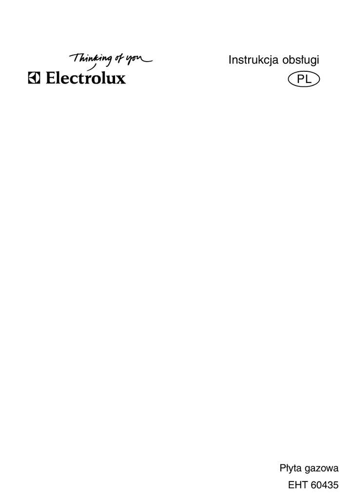 Instrukcja obsługi PL Płyta gazowa EHT 60435 2 electrolux electrolux 3 Dziękujemy za wybranie jednego z naszych produktów o wysokiej jakości. Aby zapewnić optymalne i prawidłowe działanie Państwa urządzenia prosimy o dokładne przeczytanie niniejszej instrukcji obsługi. Pozwoli to Państwu na doskonałe i najbardziej wydajne kierowanie wszystkimi procesami. Zalecamy przechowywanie instrukcji obsługi w bezpiecznym miejscu, co pozwoli na korzystanie z niej również w przyszłości. Ponadto prosimy o przekazanie jej przyszłemu właścicielowi urządzenia. Życzymy Państwu wiele radości z używania nowego urządzenia. 4 electrolux Spis treści Instrukcje dla użytkownika Ważne informacje dotyczące bezpieczeństwa 5 Opis płyty 8 Eksploatacja 9 Konserwacja i czyszczenie 12 Rozwiązywanie problemów 14 Serwis i oryginalne części zamienne 27 Gwarancja Europejska 27 Gwarancja/Serwis 28 Instrukcje instalacji Dane techniczne 15 Podłączenie do instalacji gazowej 17 Podłączenie do zasilania elektrycznego 19 Dostosowanie do różnych rodzajów gazu 21 Zabudowa 23 Możliwości zabudowy 25 Wskazówki dotyczące korzystania z niniejszej instrukcji Objaśnienie symboli używanych w instrukcji obsługi: Wskazówki dotyczące bezpieczeństwa ) Kolejność wykonywania czynności Porady i wskazówki Informacje dotyczące środowiska naturalnego Urządzenie wyprodukowano zgodnie z następującymi dyrektywami WE: 2006/95 EEC - 2004/108 EEC - 90/396 EEC, aktualne wydanie. PRODUCENT: ELECTROLUX ITALIA S.p.A. C.so Lino Zanussi, 30 - 33080 Porcia - PN (WŁOCHY) electrolux 5 POLSKI Ważne informacje dotyczące bezpieczeństwa Ostrzeżenia zawarte w instrukcji mają na celu zapewnienie bezpieczeństwa. Należy je uważnie przeczytać przed instalacją lub użyciem urządzenia. Ważne jest, aby niniejsza instrukcja została zachowana na przyszłość wraz z urządzeniem. W razie sprzedaży lub przekazania urządzenia innemu użytkownikowi, należy pamiętać o przekazaniu nowemu użytkownikowi niniejszej instrukcji, aby umożliwić mu zapoznanie się z funkcjonowaniem urządzenia i zasadami bezpieczeństwa. Niniejsza instrukcja obowiązuje wyłącznie w krajach, których symbole podano na okładce oraz na samym urządzeniu. Eksploatacja • • • • • • • • • • • • Niniejsza płyta jest przeznaczona wyłącznie do niekomercyjnych zastosowań domowych. Urządzenie jest przeznaczone wyłącznie do przygotowywania jadalnych potraw i NIE NALEżY stosować go do innych celów. Zmiany parametrów lub inne modyfikacje urządzenia grożą niebezpieczeństwem. Ze względów bezpieczeństwa i higieny, płyta powinna być zawsze utrzymywana w czystości. Osad tłuszczu lub resztek potraw może stać się przyczyną pożaru. Zabrania się korzystania z płyty, jeśli ma ona kontakt z wodą. Nie wolno obsługiwać płyty mokrymi rękami. Nie wolno pozostawiać płyty bez nadzoru podczas przygotowywania potraw z użyciem oleju i tłuszczów. Na płycie nie należy stawiać niestabilnych lub odkształconych naczyń ponieważ mogą się one przewrócić prowadząc do rozlania płynu. Nie wolno stosować naczyń plastikowych lub z folii aluminiowej do gotowania potraw. Produkty żywnościowe o krótkiej trwałości, elementy wykonane z plastiku oraz produkty w aerozolu nie powinny być przechowywane nad ani pod płytą. Pod żadnym pozorem nie należy próbować naprawiać płyty we własnym zakresie. Naprawy wykonywane przez osoby niedoświadczone mogą spowodować obrażenia lub wadliwe działanie płyty. Należy skontaktować się z lokalnym autoryzowanym serwisem. Należy zawsze domagać się oryginalnych części zamiennych. Gdy płyta nie jest używana, pokrętła sterowania powinny być zawsze w pozycji wyłączenia. W przypadku podłączania urządzeń elektrycznych do gniazdka znajdującego się w pobliżu płyty kuchennej, należy upewnić się, ze przewody zasilania nie dotykają płyty i trzymać je z dala od nagrzewających się części płyty. Jeśli płyta nie działa, należy odłączyć zasilanie elektryczne. 6 electrolux Bezpieczeństwo osób • • • • Niniejsza płyta kuchenna nie jest przeznaczona do użytku przez osoby (w tym dzieci) o ograniczonych zdolnościach fizycznych, sensorycznych czy umysłowych, a także nieposiadające wiedzy lub doświadczenia w użytkowaniu tego typu urządzeń, chyba, że będą one nadzorowane lub zostaną poinstruowane na temat korzystania z tej płyty kuchennej przez osobę odpowiedzialną za ich bezpieczeństwo. Niniejsza płyta kuchenna została przeznaczona do obsługi przez osoby dorosłe i dzieci pod nadzorem. NIE WOLNO pozwalać dzieciom na manipulowanie elementami sterowania ani na zabawę urządzeniem a nawet w jego pobliżu. Dostępne elementy płyty mogą nagrzewać się w czasie używania. Należy uważać, aby dzieci NIE ZBLIżAłY się do urządzenia, gdy jest ono gorące. Dzieci mogą również doznać obrażeń w wyniku ściągania patelni lub garnków stojących na płycie. Informacje dotyczące instalacji, czyszczenia i konserwacji • • • • • • • • Wszystkie czynności związane z instalacją urządzenia muszą być wykonywane przez odpowiednio wykwalifikowaną lub kompetentną osobę zgodnie z przepisami i normami obowiązującymi w kraju, w którym płyta jest używana. Wokół płyty należy zapewnić odpowiednią wentylację. Niedostateczny dopływ świeżego powietrza może prowadzić do niedoboru tlenu. Należy sprawdzić, czy typ gazu i napięcie zasilania w sieci są zgodne z parametrami podanymi na tabliczce znamionowej znajdującej się w pobliżu króćca przyłączeniowego gazu. Płyta kuchenna nie jest podłączana do instalacji wyciągu gazów. Należy ją zainstalować i podłączyć zgodnie z obowiązującymi przepisami dotyczącymi instalacji. Szczególną uwagę należy zwrócić na wymagania dotyczące wentylacji. Eksploatacja gazowych urządzeń do gotowania powoduje zwiększone 
