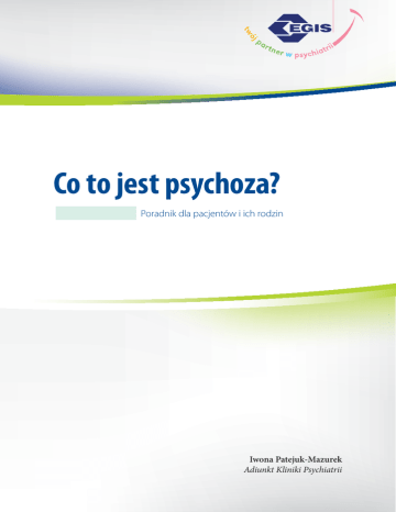 Co to jest psychoza? Poradnik dla pacjentów i ich rodzin Iwona Patejuk-Mazurek Adiunkt Kliniki Psychiatrii Co to jest psychoza? Poradnik dla pacjentów i ich rodzin Co to jest psychoza? Nazwa „psychoza” jest określeniem ogólnym, obejmującym trzy podstawowe grupy objawów - tzw. wytwórcze (pozytywne), ubytkowe (negatywne) oraz dezorganizacji. Używamy go na określenie stanów, w których chory w jakimś zakresie traci poczucie realności siebie, otaczającego go świata i związków z tym światem. Objawy te mogą występować w różnym zestawieniu i nasileniu u różnych pacjentów, jednak zaburzają codzienne funkcjonowanie chorego. W wyniku dokładnej diagnozy psychoza może okazać się schizofrenią, zaburzeniem typu schizofrenii, ostrym przemijającym stanem psychotycznym itp. Do objawów wytwórczych należą: » Urojenia – są to sądy pochodzenia chorobowego, niezgodne z rzeczywistością, które nie mijają bez leczenia; pacjent jest przekonany o ich słuszności i czasem zgodnie z nimi postępuje (np. przekonanie o byciu bogiem, poczucie spisku przeciwko sobie, kontrolowania przez inne osoby lub istoty, posiadania nadzwyczajnej mocy, zdolności...) » Omamy – są to wrażenia mogące pochodzić z każdego ze zmysłów, które powstają bez żadnego bodźca (np. słyszenie głosów w głowie lub innej części ciała, gdy nie ma źródła dźwięku, widzenie postaci, których nikt inny nie widzi, odczuwanie zapachów, których nikt z otoczenia nie czuje). Objawy wytwórcze są obecne w schizofrenii, ciężkiej depresji, nasilonej manii, w zespołach abstynencyjnych po nadużywaniu alkoholu (majaczenie alkoholowe), przy używaniu substancji psychoaktywnych, przy ciężkich chorobach somatycznych (majaczenie na podłożu somatycznym), w stanach odwodnienia u osób w podeszłym wieku. Do objawów ubytkowych (negatywnych) należą: » Zobojętnienie emocjonalne – utrata zainteresowania sprawami, które przed chorobą sprawiały przyjemność, też poczucie małej wartości, nieprzydatności, bycia ciężarem. » Zblednięcie emocji – trudność w przeżywaniu i wyrażaniu swoich uczuć, problemy w odczytywaniu uczuć innych osób (obojętność na otoczenie). » Ambiwalencja – jednoczesne przeżywanie uczuć przeciwstawnych (złości i miłości ), bez poczucia ich sprzeczności. » Autyzm – „zamykanie się we własnym świecie”, odcinanie się od świata realnego, zaabsorbowanie przeżyciami wewnętrznymi, które stają się ważniejsze jak rzeczywistość. » Zmniejszenie motywacji i energii do działania – trudności w rozpoczynaniu i kończeniu czynności (np. problemy z codzienną aktywnością jak higiena osobista, przygotowanie posiłków, sprzątanie). » Ubóstwo mowy – niechęć do rozmowy; zmniejsza się ilość wypowiadanych słów, brakuje zdań złożonych w wypowiedziach, często odpowiedzi złożone z pojedynczych słów. Znaczne nasilenie takich objawów może prowadzić do wycofania się osoby chorej z codziennego życia, izolowania się od innych, zerwania kontaktów nawet z najbliższymi. 2 3 Co to jest psychoza? Do objawów dezorganizacji psychicznej należą: » Dezorganizacja zachowania – dziwne, niedostosowane zachowania np. pobudzenie, spowolnienie ruchowe, dziwaczne gesty. » Formalne zaburzenia myślenia – kłopoty z jasnym myśleniem (co odzwierciedla się w rozkojarzeniu wypowiedzi, zaburzeniach pamięci i skupienia uwagi), trudności w wypowiadaniu się oraz rozumieniu innych osób. Może to utrudniać np. rozumienie czytania, uczenie się, rozwiązywanie problemów. Do innych objawów związanych z psychozą należą: stany lękowe, niepokój, wahania nastroju, pobudzenie, agresja, wrogość, podejrzliwość, zaburzenia snu i apetytu. W początkowym (ostrym) etapie choroby pacjent jest bezkrytyczny do swojego stanu, nie ma dystansu do swych przeżyć i zachowań, nie traktuje ich jako choroby. Wraz z postępem leczenia nabiera krytycyzmu do swojej sytuacji i konieczności kontynuacji terapii. Co jest przyczyną powstawania psychoz? Wiele lat intensywnych badań nad psychozami pokazuje, iż na powstanie ich mają wpływ zarówno czynniki genetyczne (dziedziczne w pewnym sensie) jak i środowiskowe. Do czynników genetycznych (80%) zalicza się mutacje genowe (zmiany w genach), będące m.in. przyczyną nieprawidłowości w budowie niektórych struktur w mózgu, zaburzeń w neuroprzekaźnictwie, mniejszej odporności na stresy psychiczne. Czynniki środowiskowe (20%) to m.in. choroby matki w czasie ciąży (np. grypa), nieprawidłowy poród, co rzutuje na rozwój płodu a następnie dziecka, otoczenie, w jakim wychowuje się człowiek, kontakty międzyludzkie... Ryzyko zachorowania w populacji ogólnej to 1%. Im bliższe pokrewieństwo z osobą chorą, tym prawdopodobieństwo zachorowania większe (np. rodzic chory – 6%, bliźnięta dizygotyczne – 17%, bliźnięta monozygotyczne – 48%), jednak nie osiąga 50%. Kiedy rozpoczyna się psychoza? Po raz pierwszy (pierwszy epizod schizofrenii) psychoza pojawia się zwykle pomiędzy okresem dojrzewania a 35 rokiem życia. Dzieci chorują rzadko, u mężczyzn choroba rozwija się wcześniej jak u kobiet i częściej ma mniej korzystny przebieg. W pierwszym okresie zaburzeń, które później diagnozowane są jako psychoza, występują objawy mogące przypominać zaburzenia lękowe, nerwice, depresje, zaburzenia zachowania. Występują czasem na kilka miesięcy przed wyraźnymi objawami psychozy i są różne dla różnych pacjentów. Jakie są pierwsze objawy psychozy? Bardzo często chorzy odczuwają zaburzenia myślenia, zmniejszoną koncentrację uwagi i zaburzenia pamięci (np. uczniowie, studenci nie mogą się uczyć), skarżą się na zmniejszony napęd i motywację do działania, mogą wystąpić zaburzenia snu, apetytu i lęk. Bywa, iż stają się bardzo podejrzliwi, drażliwi, zachowują się dziwacznie (inaczej niż zwykle) lub wycofują się z kontaktów z in