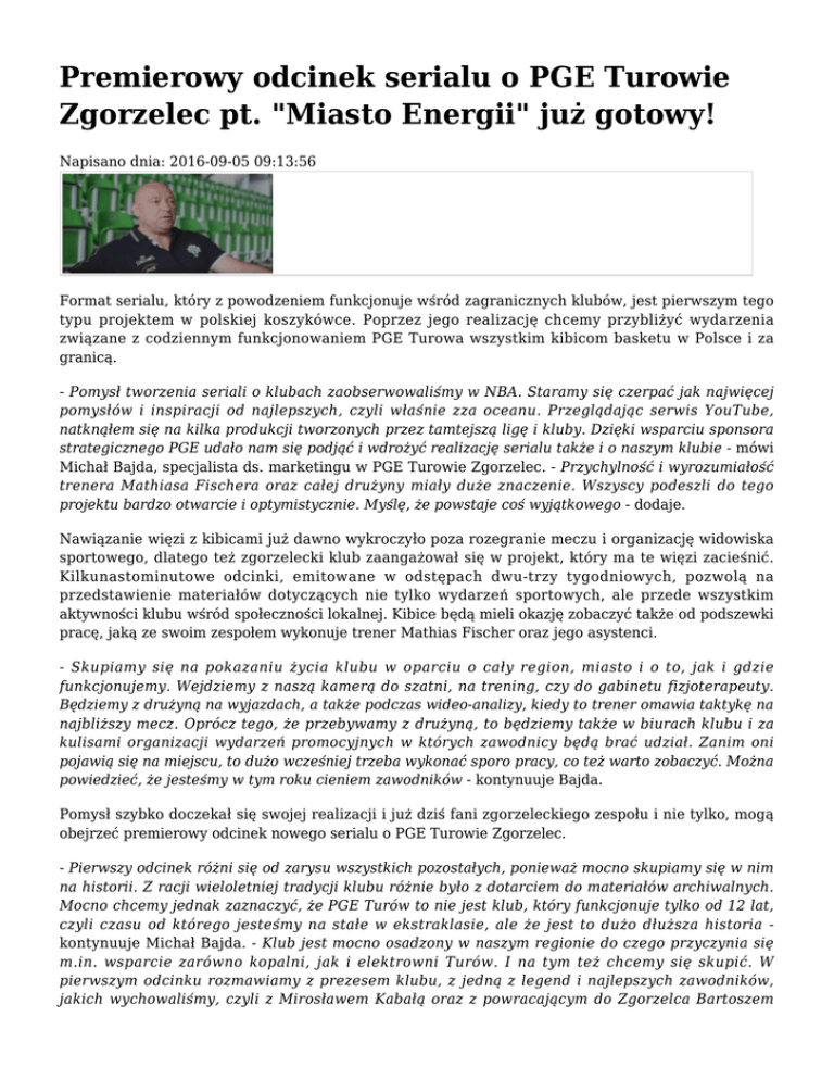Premierowy odcinek serialu o PGE Turowie Zgorzelec pt. "Miasto
