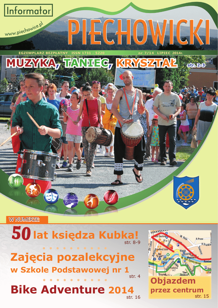 LIPIEC 2014 EGZEMPLARZ BEZPŁATNY INFORMATOR PIECHOWICKI ISSN 1731 - 5220 nr 7/14 L I P I E C 2014r. MUZYKA, TANIEC, KRYSZTAŁ str. 2-3 W NUMERZE: 50 lat księdza Kubka! str. 8-9 Zajęcia pozalekcyjne w Szkole Podstawowej nr 1 str. 4 Bike Adventure 2014 str. 16 Objazdem przez centrum str. 15 2 INFORMATOR PIECHOWICKI LIPIEC 2014 Muzyka, Nawiązując do treści plakatu promującego projekt „Muzyka bez granic”, muzyka, taniec i kryształ miały „grać razem” na cyklicznym, piechowickim święcie kultury, sztuki i tradycji. Czy tak było? Czy to się udało? Najprościej jest odpowiedzieć – tak. Muzyka i kryształ już 1 lipca wkomponowały się w piechowicki pejzaż dźwięków wzbudzając zainteresowanie mieszkańców, gości i turystów. Donośne brzmienie afrykańskich bębnów oraz ostre tony borów grawerskich nawoływały chętnych do wzięcia udziału w warsztatach bębniarskich i warsztatach zdobienia szkła. Chętnych nie brakowało. Przez 4 dni, oprócz 16-osobowej grupy stałych uczestników warsztatów z Polski i Czech wzięło w nich udział również wielu mieszkańców Piechowic oraz turystów. Doskonałym tłem i oprawą dla tej specyficznej symbiozy muzyki i kryształu były piękne prace artystyczne, prezentowane w tym czasie na wystawie konkursowej „Szklana Improwizacja” oraz bogata zieleń parku miejskiego przy skrzyżowaniu ul. Żymierskiego i Mickiewicza. Zdecydowanie muzyczne i kryształowe było także piątkowe popołudnie, kiedy to w centrum Piechowic pojawił się barwny, muzyczny korowód, prowadzony przez lidera korowodu i grupę werblistów. Tworzyli go uczestnicy warsztatów oraz reprezentanci piechowickich klubów, związków, organizacji, instytucji i Urzędu Miasta Piechowice, którzy zapraszali przechodniów do udziału w uroczystym otwarciu Muzycznej nocy i Kryształowego Weekendu. Chwilę później przy dźwiękach fanfar p. Witold Rudolf – Burmistrz Miasta Piechowice przeciął symboliczną wstęgę, otwierając tym samym projekt MUZYKA BEZ GRANIC. W tym samym czasie w niebo poszybowały baloniki wypuszczone przez dzieci i gości honorowych piątkowej ceremonii otwarcia, niosąc w prze- LIPIEC 2014 3 INFORMATOR PIECHOWICKI taniec, kryształ stworza hasło „Muzyka nie zna granic”. Zaraz po tym, kryształowy klucz - symbol władzy przekazywanej na czas Kryształowego Weekendu przez Burmistrza Miasta Piechowice, trafił do rąk księdza Kubka. Kryształowy klucz w rękach człowieka o kryształowym sercu to prawdziwa eksplozja pozytywnych emocji. Emocje te spotęgował koncert „Rytmy afryki”, który płynnie przeszedł we współczesne rytmy europejskie i koncert perkusyjny. Po muzycznych doznaniach w plenerze, muzyka folkowa zagościła przy piecu hutniczym na terenie huty Julia. Tam dynamiczne i skoczne melodie całego świata wygrywane na skrzypcach przez Marię Zuchntke zlewały się z ciekłym kryształem tworząc jedną artystyczną całość. Piątek zakończył się balladowo. Wieczorem park wypełniły przeboje zespołu Czerwone Gitary i ballady czeskie, doskonale wykonane przez zespół Effect z Trutnova, a wszystko to odbywało się w oprawie pięknych prac konkursowych wykonanych przez artystów i amatorów sztuki szklarskiej na potrzeby wystawy „Szklana improwizacja”. Po MUZYCZNEJ NOCY nastąpił TANECZNY DZIEŃ. Sobotnie przedpołudnie powitało wszystkich przechodniów warsztatami mozaiki szklanej i stoiskami ze szkłem artystycznym oraz produktami regionalnymi. Od rana Zdenka i Milan Rychterovie pracowali z zepołem „Szklarki” prowadząc otwarte warsztaty taneczne. Swoje stoiska zorganizowali także nasi przyjaciele z Semily, którzy oferowali uczestnikom zabawy dla dzieci przygotowane przez Bibliotekę i Muzeum Miejskie z Semily, biżuterię z koralików szklanych i mobilne centrum IT. Chwilę po godz. 15. reprezentacja gości z Czech podwoiła swoje siły, a na ulicy Mickiewicza pojawiła się 20-osobowa grupa mażoletek z Rokytnicy. Czeskie mażoletki gościły w Piechowicach już nie po raz pierwszy i co istotne, za każdym razem zachwycają nas równie mocno. Po ich występie na estradzie zagościł rodzimy zespół „ Szklarki” i laureaci Turnieju Szachowego o Kryształowy Puchar Poseł Zofii Czernow oraz wystawy konkursowej „Szklana improwizacja”. Pani Poseł, która objęła honorowym patronatem piechowickie warsztaty zdobienia szkła, osobiście wręczyła kryształowe puchary i statuetki zadowolonym zwycięzcom. Przedstawiciel naszego kolejnego patrona – Pałacu Pakoszów, którego właściciele są od 3 lat fundatorami nagród w konkursie „Szklana improwizacja” niestety nie mógł przybyć na ceremonię wręczenia nagród. Mamy nadzieję, że nie miało to wpływu na poziom konkursu i satysfakcję laureatów z otrzymanej wygranej. Głosami przechodniów oraz decyzją gości i mieszkańców Miasta Piechowice w gronie laureatów konkursu „Szklana improwizacja” znaleźli się: • w kategorii profesjonalistów: Jagoda Radomska, Józef Margol i Emanuela Czujowska zajmując kolejno miejsce I,II i III, • w kategorii amatorów: Mariusz Uryn, Magdalena Zagórska, Monika Jabłońska/ Helena Wiśniewska zajmując odpowiednio miejsce I,II,III. Po tym kryształowym akcencie estradą bezgranicznie zawładnął taniec i muzyka. Publiczność bardzo dobrze przyjęła czeski zespół folklorystyczny „Horenacek”, polskiego „Jubilata” ze Świdnicy oraz grupę tańca orientalnego „Badar” z Upic. „Jubilat” żywiołowo wtargnął z tańcem na ul. Mickiewicza zachwycając dynamiką, choreografią i pięknymi strojami. W tym momencie chciałoby się powiedzieć - więcej takich pokazów tanecznych w Piechowicach! Następny punkt programu nie przewidywał już żywiołowych tańców, ale żywiołowy wokal. W takie oczekiwania wpisała się doskonale nasza rodzima grupa „S-POK-oo”, a jeszcze bardziej Liber i Natalia Szroeder. Grupy sympatyków Natalii i Libera stanowiły całkiem pok
