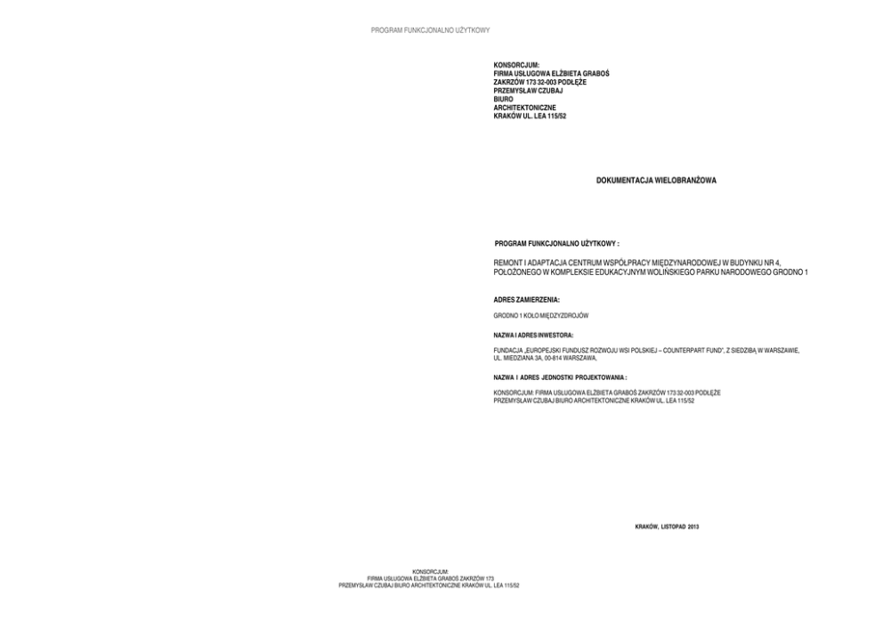 DOKUMENTACJA WIELOBRANśOWA REMONT I ADAPTACJA