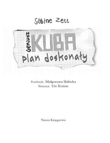 Małgorzata Słabicka Ilustracje Ute Krause Przełożyła Nasza Księgarnia Tytuł oryginału niemieckiego Hugos Masterplan Title of the original German edition: Hugos Masterplan © 2011 Loewe Verlag GmbH, Bindlach © Copyright for the Polish edition by Wydawnictwo „Nasza Księgarnia”, Warszawa 2013 © Copyright for the Polish translation by Małgorzata Słabicka 2013 Dla Vinca i Meli, którzy codziennie są dla mnie skarbnicą nowych powiedzonek, dowcipów i pomysłów Matematyczny hicior Król miał włabze nab gaństwem. Co?! Zasnąłem, czy jak? Przecieram oczy, ale napis na tablicy się nie zmienia. Wiedziałem. Bycie geniuszem jest na dłuższą metę obciążeniem dla mózgu. No i teraz od tego genialnego myślenia nabawiłem się jakiejś strasznej choroby oczu, która powoduje przekręcanie liter! Powinienem jak najszybciej trafić do szpitala, zanim mi się pogorszy. Dobrze, że na następnej lekcji piszemy klasówkę z matmy. Zastanawiam się, czy już dzwonić do rodziców, czy kazać się wieźć prosto do szpitala, gdy nagle słyszę, jak inni chichoczą. — Nie zna dobrze niemieckiego, a ma nas uczyć historii? Powinni to pokazać w telewizji — mówi pod nosem Nico Kolping, mój najlepszy przyjaciel, który siedzi tuż za mną. Od drugiego dnia szkoły już niestety nie obok mnie, bo podobno za dużo gadaliśmy i trzeba było nas rozdzielić. Tak stwierdziła pani Rimons-Wallenberg. A ponieważ jest naszą wychowawczynią, miała niestety ostatnie słowo. Teraz dzielę ławkę z przemądrzałą Carolin, a Nico z kujonką Ann-Kathrin. Trudno określić, który z nas trafił gorzej. Z żadną nie da się pogadać, nawet gdybyśmy chcieli. Ale oczywiście nie chcemy, bo obydwie są z gatunku „wzorowych uczennic”, czyli wiedzą wszystko, potrafią wszystko, robią wszystko. Również zadania do mowe, co w naszej klasie od początku było uważane za obciachowe. — Cicho bądź! Pan doktor Torres pochodzi przecież z Chile, nie można więc od niego wymagać idealnego niemieckiego. Poza tym super tłumaczy historię, tak ciekawie jak w książce — szepcze Carolin i podnosi palce do góry. — Panie profesorze, przepraszam. Przekręciło się panu kilka literek… Okej, dobra wiadomość jest taka, że nie mam choroby oczu. Zła: teraz mogę zapomnieć o natychmiastowym transporcie karetką i nie wywinę się od klasówki z matmy. Kurrr… demolecholewcia. Ale jeżeli ten Torres, który dopiero co zaczął nas uczyć, bo pani Wensing poszła na kilkumiesięczne zwolnienie lekarskie, ma przez cały rok szkolny tak koślawo pisać, to będzie niezły ubaw. Zobaczymy, kiedy przylecą w tej sprawie pierwsi rodzice. Już słyszę, jak wołają: — Panie dyrektorze, tak nie może być! Mój synek ma w szóstej klasie prawo do nauki w języku literackim! I do poprawnej pisowni! Również na lekcjach historii! A do tego biedny Torres cierpi pewnie na jedno z tych skrótowych schorzeń cywilizacyjnych. ADS czy DHS albo SOS, czy jakoś tak. Wciąż się przecież o tym słyszy. To się chyba nazywa zespół-upośledzenia-matematyczno-czytaniowego-i-czegoś-jeszcze. Ale czy w takiej sytuacji powinien nas uczyć? Może to naprawdę skandal, jak twierdzi Nico? — O, gracias. Mówiłem wam, że ja lepsze mówię, niż napiszę. A mój hiszpański jest oczywiście o dużo lepiej od niemieckiego. — Torres szczerzy zęby i ge- stem przywołuje Carolin. — Czy mogłabyś to napisać poprrrawnie? Moja sąsiadka z ławki uważa się chyba za kogoś bardzo ważnego, gdy zrywa się i śpiesznie podbiega do tablicy. Ja natomiast muszę się zająć ważniejszymi sprawami. Po pierwsze: Od kogo będę mógł zrzynać na matmie? Bo jeśli po raz kolejny napiszę na jedynkę, to moje życie w domu zawiśnie na włosku. Mama na pewno dostanie szału i znowu zacznie ględzić o korkach. Tak jakbym jakichś potrzebował! To śmieszne! Dobra, na samym początku roku szkolnego zarobiłem pałę na klasówce z matmy. I z angielskiego. Na niemieckim poszło trochę lepiej, bo dostałem dwóję z plusem, ale rodzice mimo to nie byli zachwyceni. Podobnie zresztą jak dwóją z kartkówki ze słówek francuskich, ale uważam, że to się nie liczy, bo to był przecież tylko teścik, a nie sprawdzian. Z klasówki dostałem na szczęście tróję. Tyle tylko że popełniłem błąd i powiedziałem rodzicom o wszystkich sprawdzianach, dlatego potem nie mogłem się wykręcić, gdy mama wciąż zadawała pytania o wyniki i zaraz potem poznała je na wywiadówce. W domu rozpętało się piekło! Potrzebowałem prawie godziny, by wybić jej z głowy te korepetycje. Dlatego przezornie nic nie powiedziałem o dzisiejszej klasówce. Po co wywoływać wilka z lasu? Po drugie: Jak mógłbym ustawić kamerę, żeby dyskretnie nagrywać lekcje historii? Bo jeżeli ten Torres nie ma żadnego skrótowego schorzenia, tylko rzeczywiście nie zna zbyt dobrze niemieckiego, to naprawdę wybuchnie skandal! Pomysł Nica z telewizją wcale nie jest taki głupi. Z tego, co się słyszy, prywatne stacje całkiem nieźle płacą, gdy się im dostarcza gorące tematy. Tak przynajmniej mówi Nico, a on jest ekspertem. Nie żeby już sprzedał jakąś historię, ale ma wujka, który pracuje w telewizji. Chyba w RTL. Albo SAT1. Nie mam pojęcia, muszę go dopytać. W każdym razie Nico twierdzi, że oni wciąż szukają filmów dokumentalnych, które opowiadają o prawdziwym życiu i ujawniają sensacje. Niewłaś ciwy stan rzeczy w szkole podpada przecież pod jedno i pod drugie! Dyskretnie odwracam się do mojego kumpla. — Réunion ordinaire o czwartej. Torres w telewizji. — Po co ci kamerdyner? — Nico znowu nic nie ja! rzy. y ner? d r e Ha, dlaczego po prostu K am nie wybrał francuskiego zamiast łaciny? Gdyby tylko mnie posłuchał. Pojęcie réunion ordinaire znam właściwie od taty, który mówiąc o terminach swoich spotkań, używa na przemian słów meeting albo réunion ordinaire. A ponieważ robią wrażen