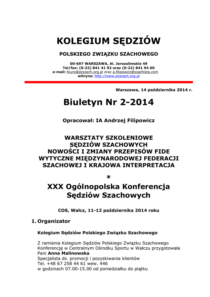 kolegium sędziów - Polski Związek Szachowy