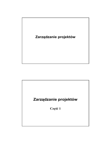 Zarządzanie projektów Zarządzanie projektów Część 1 Organizacja Kursu • Wykład - interaktywna prezentacja (ok. 95% czasu) • Test (ok.. 5% czasu) • Opracowanie indywidualne lub grupowe związane z zaliczeniem i zastosowaniem nabytej wiedzy do własnych projektów • Studium przypadków (case study) Organizacja Kursu • Zarządzanie projektami - podstawy – Podstawowe pojęcia i terminy związane z zarządzaniem projektami – Metodologia, fazy projektu – Inżynieria oprogramowania – Czynniki decydujące o sukcesie / porażce przy realizacji projektu (Critical Success Factors) – Formalne podstawy metod planowania przedsięwzięć • Narzędzia wspomagające zarządzanie projektów • Przegląd oprogramowania do zarządzania projektami (Ms Project, ProChian Project Scheduler, GanttProject) Organizacja Kursu • Wybór narzędzia - kryteria wyboru • GantPject - oprogramowanie do zarządzania projektami, które jest open source (otwarte oprogramowanie) - krótka prezentacja programu • Instalacja oprogramowania do zarządzania projektów GanttProject • Pierwsze kroki z programem Organizacja Kursu • Jakie informacje należy wprowadzić do programu – – – – – – – – Tworzenie listy zadań Określenie terminów poszczególnych zadań Określenie zależności pomiędzy zadaniami Przydział zasobów do konkretnych, poszczególnych zadań Tworzenie własnego harmonogramu Analiza wpływu zasobów na koszty projektu Sposoby rozwiązywania konfliktów w terminarzu harmonogramu Kontrola realizacji projektu • Praca grupowa, kontrolowanie, koordynacja zespołu • Zasoby Pracy zaliczeniowe • Warunkiem zaliczenia dyscypliny Zarządzanie Projektami jest sporządzenie własnego projektu i uzyskanie pozytywnej oceny z jego obrony. • Przykładowe tematy prac zaliczeniowych obejmują: – Wdrożenie oprogramowania Open Source (Otwarte darmowe oprogramowanie) w firmie – Wdrożenie zasady (strategii) „Korzystam z legalnego oprogramowania” – Plan przygotowania firmy do przejścia na € – Skróty angielskie (francuskie, niemieckie, rosyjskie) stosowane w zarządzaniu projektami – Słownictwo angielskie (francuskie, niemieckie, rosyjskie) stosowane w zarządzaniu projektami – GanttProject - dokumentacja w języku polskim Wyzwania dla firm • Czym jest projekt? – Projekt - „pomysł, zamiar, plan zamierzonej budowy, konstrukcji, model, szkic”* - wspólna wieloetapowa praca przy realizacji złożonych planów do osiągnięcia określonego celu; - ograniczone w czasie przedsięwzięcie podjęte w celu wytworzenia unikalnego produktu lub usługi • Wyzwania = projekty ? • Czym jest zarządzanie projektem? • Zarządzanie projektami w firmach międzynarodowych (multicultural projects) • * Władysław Kopaliński, Słownik wyrazów obcych i zwrotów obcojęzycznych z almanachem, MUZA SA, Warszawa 1999, s. 408 Wyzwania dla firm • Spełnić wymagania roku 2000 (Meet the Y2k challenge) - stare systemy, „zapomniane” języki - Cobol.... • Euro conversion • Wymagania poszczególnych ustaw: - Ochrona Danych Osobowych - Basel II .... Wyzwania dla firm • Związane z oprogramowaniem: – oprogramowanie teraz musi nie tylko prowadzić do automatyzacji czynności, powinno tworzyć wartość dla biznesu, zapewniać przewagę nad konkurencją; – funkcjonować w Internecie / Intranecie (Web), – rozproszone środowisko; – wymagania stawiane przez ustawodawstwo – zmieniające się wymagania i warunki (stosowanej technologii ...) podczas realizacji projektu – Okres zwrotu inwestycji - Return on Investment (ROI) Klasyfikacja projektów IT przykładowe kryteria klasyfikacji • Jak są realizowane – wewnątrz firmy – współpraca z firmą wdrażającą – outsourcing • Ukierunkowanie na – ERP – DW – BI • Obszar – CRM – Zakupy – HR, Płace • Zakres – sprzęt (hardware) – oprogramowanie (software) – sprzęt i oprogramowanie (hardware + software) Zarządzanie projektami • Zarządzanie projektami obejmuje planowanie i kontrolę realizacji złożonych przedsięwzięć Proste w teorii, w praktyce mało komu wychodzi! • Zarządzanie projektami obejmuje między innymi: • harmonogram, • budżet, • zasoby, • kontrola i raportowanie postępu projektu. Zarządzanie projektami • • • • Co jest charakterystyczne dla projektów ogółem i w szczególności dla projektów IT? Statystyki projektów w dziedzinie IT o horyzoncie czasowym do 6 miesięcy lub zaangażowaniu do 6 osób w projekcie w 2000 roku w USA (około 300 000 projektów) odzwierciedlają następujące sytuacje: – Projekt przerwany, zaniechany (ang. failed) 23% – Projekt zakończony sukcesem 28% – Projekt jest kwestionowany 49% – Przekroczenie czasu projektu (niedotrzymane terminy) 63% – Przekroczenie budżetu projektu 45% – Dostarczanie rozwiązania, które „tylko” częściowo spełniło wstępne wymagania w 2000r 67%* Jak zarządzać projektami tak, by uwięczyły się sukcesem? * Badanie przez The Standish Group projekty, które w 2000 roku są ograniczone w czasie do 6 miesięcy lub w których zaangażowanych jest do 6 osób „Extreme chaos”, http://www.standishgroup.com Zarządzanie projektami • Przekroczenie budżetu projektów w USA pokazuje, że w stosunku do 1994r (189%) w 2000r wynosiło tylko 45% Rok 2000 1998 1996 1994 * Projekt Projekt Projekt jest zakończony przerwany kwestionowany sukcesem (ang. failed) 28% 23% 49% 26% 28% 46% 27% 40% 33% 16% 31% 53% Badanie przez The Standish Group projekty które w 2000 roku są ograniczone w czasie do 6 miesięcy lub w których jest zaangażowanych do 6 osób „Extreme chaos”, http://www.standishgroup.com Zarządzanie projektami • Jak mierzyć i kontrolować sukces / porażki projektów w dziedzinie IT? • Jakie czynniki decydują o sukcesie projektu? Atrybuty, właściwości projektu • Cel • Termin • Zasoby – ludzie – energia – finanse – materiały – 