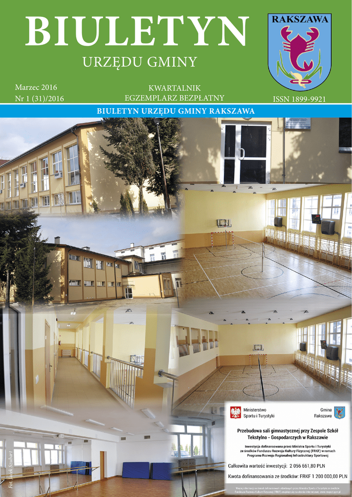 BIULETYN URZĘDU GMINY Marzec 2016 Nr 1 (31)/2016 KWARTALNIK EGZEMPLARZ BEZPŁATNY Fot. Jacek Szubart BIULETYN URZĘDU GMINY RAKSZAWA ISSN 1899-9921 Gmina Rakszawa w pierwszej dziesiątce w rankingu „Aktywna Gmina Podkarpacia” W ósmej edycji rankingu „Aktywna Gmina Podkarpacia” przygotowanego przez Wyższą Szkołę Zarządzania w Rzeszowie we współpracy z Gazetą Codzienna „Nowiny” w kategorii konkursowej: SKUTECZNY BENEFICJENT ŚRODKÓW UNIJNYCH i kategorii KREATOR KAPITAŁU SPOŁECZNEGO Gmina Rakszawa znalazła się w pierwszej złotej dziesiątce. Biorąc pod uwagę fakt, że Podkarpacie liczy 160 gmin to dla nas ogromne wyróżnienie. Kapituła tegorocznego rankingu aktywnych gmin Podkarpacia, postanowiła, że w kategorii skutecznych beneficjentów funduszy unijnych wyróżni te samorządy, które wyszły w 2014 roku poza typowy schemat aplikowania po środki unijne na wzbogacenie lokalnej infrastruktury. W złotej dziesiątce w kategorii konkursowej: skuteczny beneficjent środków unijnych i kategorii: kreator kapitału społecznego poza Gminą Rakszawa, znalazły się również Gminy: Czarna (powiat łańcucki), Dębica (gmina wiejska), Dukla, Dynów (gmina miejska), Korczyna, Orły, Rzeszów, Stalowa Wola, Żyraków. Źródło: Gazeta Codzienna „Nowiny” środa, 16 grudnia 2015r. Spotkanie opłatkowe w gminie Rakszawa Fot. Arkadiusz Zakielarz Tegoroczne gminne spotkanie opłatkowe zorganizowane przez Wójta Gminy, Radę Gminy i Koło Gospodyń Wiejskich w Rakszawie Środkowej odbyło się 23 stycznia 2016 roku w Domu Strażaka w Rakszawie. Przy wigilijnym stole zasiedli: wójt, księża, poseł na Sejm RP Kazimierz Gołojuch, radni, sołtysi, członkinie KGW, kierownicy gminnych jednostek organizacyjnych, działacze organizacji społecznych, przedstawiciele zakładów pracy. Uroczystość uświetnił występ artystyczny wykonany przez uczniów ze Szkoły Podstawowej Nr 2 w Rakszawie. Licznie zaproszeni goście wysłuchali kolęd chóru „Raxavia”. Spotkanie opłatkowe w Domu Strażaka w Rakszawie KWARTALNIK URZĘDU GMINY W RAKSZAWIE Wydawca: Urząd Gminy w Rakszawie, 37-111 Rakszawa 506, woj. podkarpackie, tel: (17) 226-12-81, fax: (17) 226-16-77 E-mail: [email protected] Redaktor naczelna: Maria Nycz/Korekta: Bożena Więcław-Babiarz, Jacek Szubart Druk i foto-skład: AKAPRINT Nakład: 2500 egzemplarzy Wydawca zastrzega sobie prawo do wyboru i redagowania tekstów. Wydawca nie odpowiada za treść poglądów autorów tekstów. Zastrzega się możliwość błędów w druku. „Biuletyn Urzędu Gminy Rakszawa” jest kwartalnikiem o charakterze informacyjnym. Redakcja pragnie nawiązać kontakt z mieszkańcami naszego lokalnego środowiska. Zwracamy się do Wszystkich, którzy pragną zabrać głos na łamach naszego Biuletynu. Jesteśmy otwarci na współpracę z instytucjami i mieszkańcami naszej gminy. Wszelkie informacje i artykuły zamieszczamy bezpłatnie. Nie publikujemy reklam i artykułów sponsorowanych. Redakcja zastrzega sobie prawo wyboru i skracania nadsyłanych materiałów. Wszystkich zainteresowanych serdecznie zapraszamy do współpracy przy tworzeniu kolejnych numerów „Biuletynu Urzędu Gminy Rakszawa”. Szczegółowe informacje: pok. 7 Urzędu Gminy w Rakszawie, tel; 17-226-12-81 wew. 44, e-mail; [email protected] 2 BIULETYN URZĘDU GMINY RAKSZAWA MARZEC 2016 Szanowni Mieszkańcy Gminy Rakszawa Otrzymujecie Państwo pierwszy numer czasopisma Biuletyn Urzędu Gminy Rakszawa, w tym roku. Przedstawiamy w nim informacje podsumowujące pracę w 2015 roku w Urzędzie i jednostkach organizacyjnych Gminy. Czytelnicy dowiedzą się również jakie inwestycje uchwalone przez Radę Gminy są proponowane do wykonania w 2016 roku. Z przykrością informuję, że zaplanowane wykonanie projektu kanalizacji w miejscowości Wydrze nie uzyskało aprobaty większości radnych. Z wielką satysfakcja informuję, że Gmina Rakszawa w rankingu „Aktywna Gmina Podkarpacia 2015” znalazła się w pierwszej dziesiątce w dwóch kategoriach: SKUTECZNY BENEFICJENT ŚRODKÓW UNIJNYCH i kategorii KREATOR KAPITAŁU SPOŁECZNEGO. Kapituła rankingu aktywnych gmin Podkarpacia, w kategorii skutecznych beneficjentów unijnych wyróżniła te samorządy, które wyszły poza typowy schemat aplikowania po środki unijne na wzbogacenie lokalnej infrastruktury. Biorąc pod uwagę, że podkarpacie liczy 160 gmin, znalezienie się w pierwszej dziesiątce to dla nas zaszczyt i prestiż. W 2015 roku pozyskaliśmy 2 959 225,25 zł ze środków zewnętrznych. Wykonaliśmy wiele ważnych dla mieszkańców inwestycji za kwotę ponad 5 mln zł. Pierwsza pełnowymiarowa, ogólnodostępna sala gimnastyczna przy Zespole Szkół TekstylnoGospodarczych została oddana do użytku. Jej przebudowa kosztowała Gminę ponad 2 miliony złotych. Na realizację tej inwestycji pozyskaliśmy dofinansowanie z Ministerstwa Sportu i Turystyki w kwocie 1,2 mln złotych. Mieszkańcy przysiółków: Bieleckówka, Nowe Pola, Rakszawa Środkowa, Rakszawa Dolna mogą korzystać z wybudowanej sieci kanalizacyjnej, na która również pozyskaliśmy dofinasowanie. Parking przy Kościele pw. Podwyższenia Krzyża Św. w Rakszawie zapewnia 62 miejsca postojowe. Jest bezpieczniej dzięki nowemu oświetleniu ulicznemu w Węgliskach i w sołectwie Rakszawa Kąty. Wykonaliśmy również modernizację drogi gruntowej w Wydrzu. Boisko sportowe przy Szkole nr 1 zostało oświetlone, boisko piłkarskie w Wydrzu ogrodzone, a na boisko przy SP3 opracowaliśmy projekt wykonania nowej sztucznej nawierzchni. Inwestujemy w turystykę. Przez naszą Gminę przebiega szlak ro- BIULETYN URZĘDU GMINY RAKSZAWA werowy Green Velo o dł. 3 km, który łączy ze sobą pięć województw Polski Wschodniej. Wspieramy działalność sportową. W 2015 roku Gmina udzieliła ponad 129 tys. dotacji klubom sportowym. TKF-45 tys. zł, KS „Włókniarz” - 80 tys. zł, KS „Zieloni Łańcut” 4600 zł z przeznaczeniem na rozwój sporto