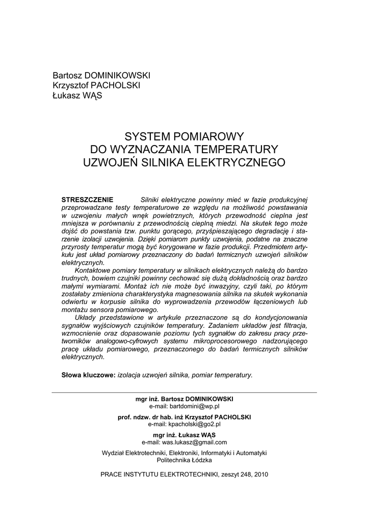 system pomiarowy do wyznaczania temperatury uzwojeń silnika