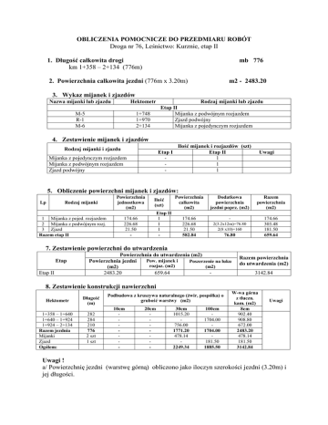 OBLICZENIA POMOCNICZE DO PRZEDMIARU ROBÓT Droga nr