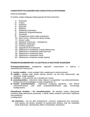 charakterystyka zagrożeń oraz ocena ryzyka ich