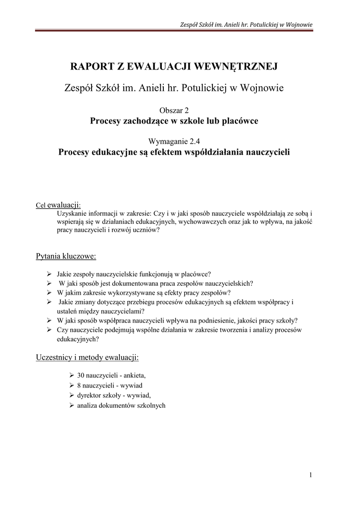 Raport - Zespół Szkół im. Anieli hr. Potulickiej w Wojnowie