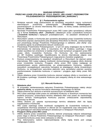 1 WARUNKI SPRZEDAŻY PRZEZ ING LEASE (POLSKA) SP. Z O.O.