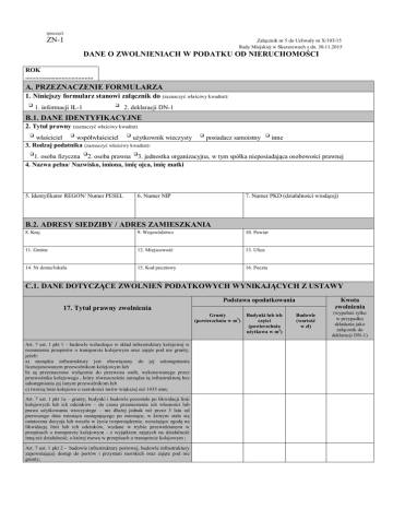 zn-1 dane o zwolnieniach w podatku od nieruchomości