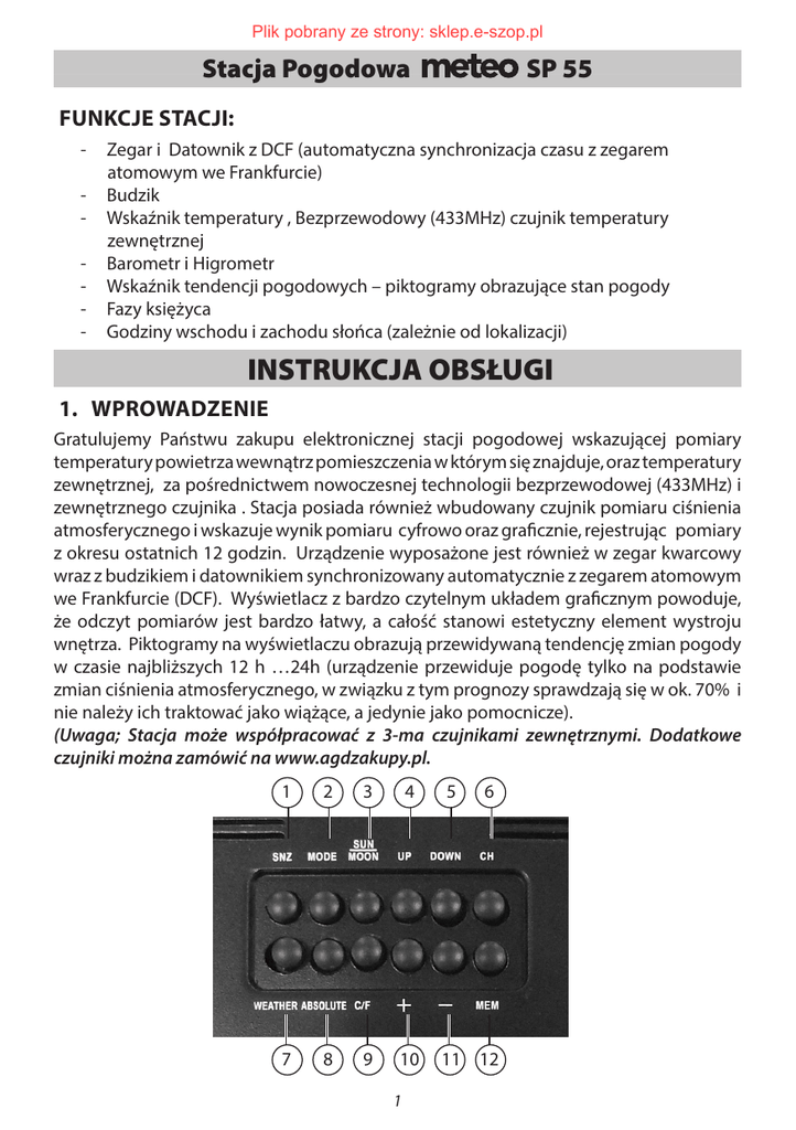 Instrukcja obsługi stacji pogody METEO SP-55 - Sklep e-SZOP