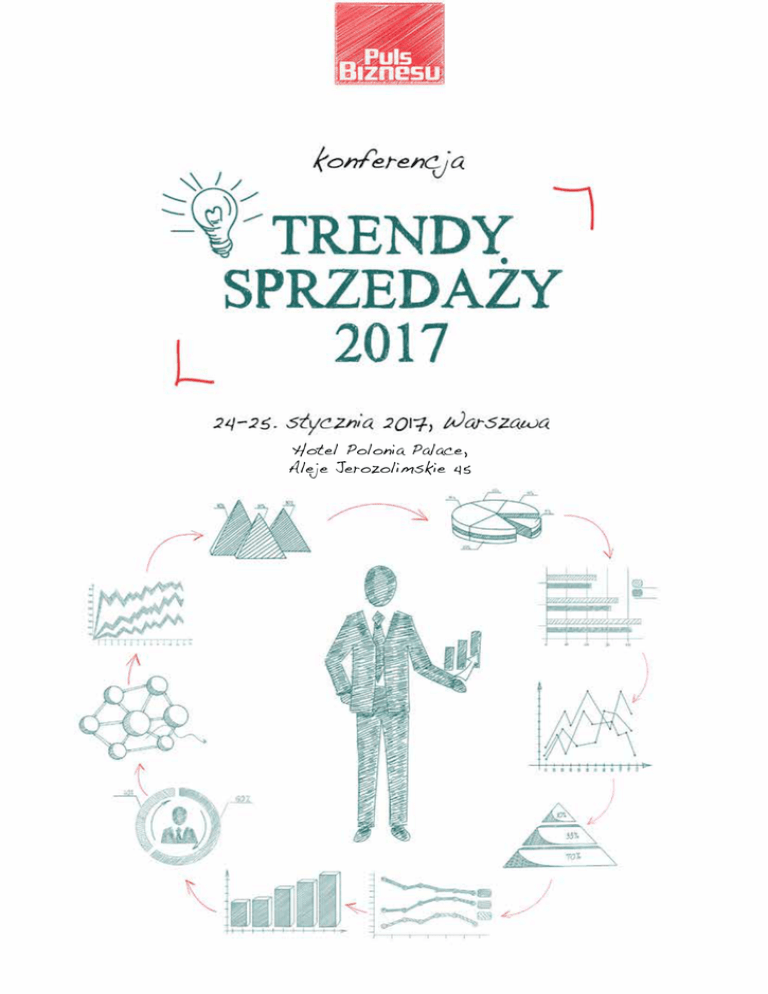 Hotel Polonia Palace, Aleje Jerozolimskie 45 Znaleźliśmy się w bardzo ciekawych, ale i niełatwych czasach dla rynku sprzedażowego: Konkurencja jest coraz większa, klient jest coraz bardziej świadomy swoich potrzeb i oczekiwań, kanałów komunikacyjnych i sprzedażowych przybywa każdego dnia. Do tego zmieniający się rynek pracy, nowe technologie oraz tendencje konkurencji do walki cenowej To wszystko dzieje się tu i teraz, a Wy jesteście w centrum tych zmian. W związku z tym, zapraszam na kolejną edycję Trendów Sprzedaży, które odbędą się 24-25 stycznia w Warszawie. Myślą przewodnią naszego wydarzenia będzie nowoczesne zarządzanie sprzedażą, a nasi eksperci opowiedzą m.in. Jak dostosować strategię sprzedaży do zmieniającego się rynku oraz jak stawiać realne cele sprzedażowe? Jak mądrze i efektywnie zarządzać sprzedażą, aby budować dobre relacje zarówno z rynkiem, jak i pracownikami? Jak rekrutować, motywować i dbać o zespół sprzedażowy oraz jak efektywnie wykorzystywać zasoby sprzedażowe? Jak sprostać natężeniu komunikacyjnemu, tak aby oferta sprzedażowa docierała do założonego targetu? Jak zarządzać różnymi kanałami sprzedażowymi jednocześnie oraz jak decydować o celach konkretnych kanałów? Jak wykorzystywać nowoczesne technologie do osiągania celów sprzedażowych? Jak poznać i wartościować naszego klienta, skąd czerpać rzetelne informacje na jego temat i jak ich nie zmarnować? Nie może Was zabraknąć na tym wydarzeniu! Trendy Sprzedaży 2017 to: Inspirujące i ciekawe prelekcje – zdobądź kompleksową wiedzę na jedynym, unikalnym wydarzeniu! Pięć kluczowych bloków tematycznych porządkujących wiedzę na temat budowy nowoczesnej, dostosowanej do aktualnego rynku, strategii sprzedaży! Praktyczna wiedza poparta wieloletnimi doświadczeniami prelegentów dowiedz się, jak inne firmy wykorzystują rozwiązania do efektywnego zarządzania nowoczesną sprzedażą! Innowacyjna formuła Akademii Menedżera Sprzedaży weź udział w specjalistycznych warsztatach przeznaczonych dla dyrektorów sprzedaży! Do udziału w Trendach Sprzedaży 2017 zapraszamy: Dyrektorów oraz managerów sprzedaży Dyrektorów ds. wsparcia sprzedaży Dyrektorów ds. rozwoju sprzedaży Dyrektorów oraz managerów handlowych Key Accountów Sales Managerów Dyrektorów oraz managerów marketingu Dyrektorów oraz managerów działów obsługi klienta Zapraszam serdecznie, Magdalena Marczak Project Manager HARMONOGRAM, 24 stycznia 2017 8.30 9.00 Rejestracja i poranna kawa Rozpoczęcie Konferencji Magdalena Marczak-Makowska, Project Manager, Puls Biznesu Marcin Renduda, Trainer / coach / business and sales consultant, RENDUDA.pl ZARZĄDZANIE STRATEGIĄ SPRZEDAŻY 9.10 INSPIRATIONAL SPEECH: Zwyciężanie na konkurencyjnym rynku - od unikalnej strategii do konkretnych czynów Szymon Kudła, mówca biznesowy, inspirator PRZEWAGA KONKURENCYJNA ZWINNOŚĆ Pierwsze „S”: SPRYT Wyprzedzanie konkurencji w każdym aspekcie pracy. Budowanie codziennych, nieoczywistych przewag konkurencyjnych. 10.10 WYTRWAŁOŚĆ Drugie „S”: SZYBKOŚĆ WSPÓŁPRACA Czwarte „S”: Trzecie „S”: SYSTEMATYCZNOŚĆ Testowanie nowych pomysłów Cierpliwe wracanie z tematem, sprzedażowych „w boju”, niezrażanie się pierwszymi unikanie niepotrzebnych niepowodzeniami. dywagacji i syndromu grzecznego prymusa. SPÓJNOŚĆ Kierowanie wspólnej energii na zewnątrz (na walkę o rynek), a nie na przepychanki wewnątrz organizacji. Zarządzanie zespołem sprzedażowym – jak zbudować sales dream team? Grażyna Piotrowska-Oliwa, prezes, Virgin Mobile Polska, Komunikacja ze sprzedażą – jak przedstawiać strategię sprzedaży, tak aby była zrozumiana? Kiedy, co i jak komunikować zespołowi sprzedażowemu? - prostota przekazu to efektywność realizacji Strategia firmy to podstawa: dokąd i jak zmierzamy? Rozliczanie celów: terminowość i obiektywizm 11.00 Przerwa kawowa SESJE DZIELONE - do wyboru 11.20 Sesja A - Zarządzanie Menedżerami Liniowymi Wojciech Herra, niezależny konsultant, trener Kim jest dobry lider? Jak go znaleźć i jak nim kierować? Kompetencje liniowego menedżera sprzedaży- jak go nie zasypać obowiązkami, tak aby skutecznie dowodził handlowcami Jakich narzędzi potrzebuje menedżer liniowy? Jak przygotować menedżerów do rekrutacji handlowców?- nowe metody rekrutacji Co zrobić, żeby menedżerowi się chciało, czyli jak i kiedy motywować, żeby osiągnąć cel? 11.20 Sesja B - Zarządzanie Handlowcami Dorota Ostrożańska, Senior Sales Trainer, Avon Cosmetics Polska Sp. z o.o. handlowca handlowca Rekrutacja Zespół handlowców Jaki jest i czym się charakteryzuje? Określ benchmark handlowca, z którym chcesz pracować. Zrekrutowałeś handlowca i co dalej? Przeprowadź go z sukcesem przez okres próbny i spowoduj, by chciał pozostać z Tobą w Twoim zespole. Jakich masz handlowców? Kim dysponujesz i czy te zasoby gwarantują Ci realizację celów? Zarządzaj kalendarzami, edukacją i motywacją handlowców Personal branding Zarządzanie handlowcami to wyzwanie. Dystrybucja zadań, priorytetyzacja, alokacja zasobów (zwłaszcza czasu), zbieranie feedbacków... to zarówno zadania każdego handlowca, jak i tego, kto handlowcami zarządza. A handlowiec to ktoś, kto nie tylko spotyka się z klientami, lecz przede wszystkim sprzedaje. Może robić to lepiej lub gorzej, jednocześnie ujawniając indywidualne różnice w podejściu do wyzwań. Jak je rozumieć, akceptować i godzić? Przy założeniu, że każdy z Twoich handlowców może mieć inne preferencje w zakresie liczby kontaktów z klientami, komunikacji, przygotowania do pracy etc...? Zapraszam Cię do udziału w interaktywnej sesji ćwiczeniowej, w której zmierzysz się z indywidualnymi stylami działania. Korzyść dla Ciebie? Empiryczne doświadczenie różnorodności, które błyskawicznie przełożysz na pracę z handlowcami. HARMONOGRAM, 24 stycznia 2017 12