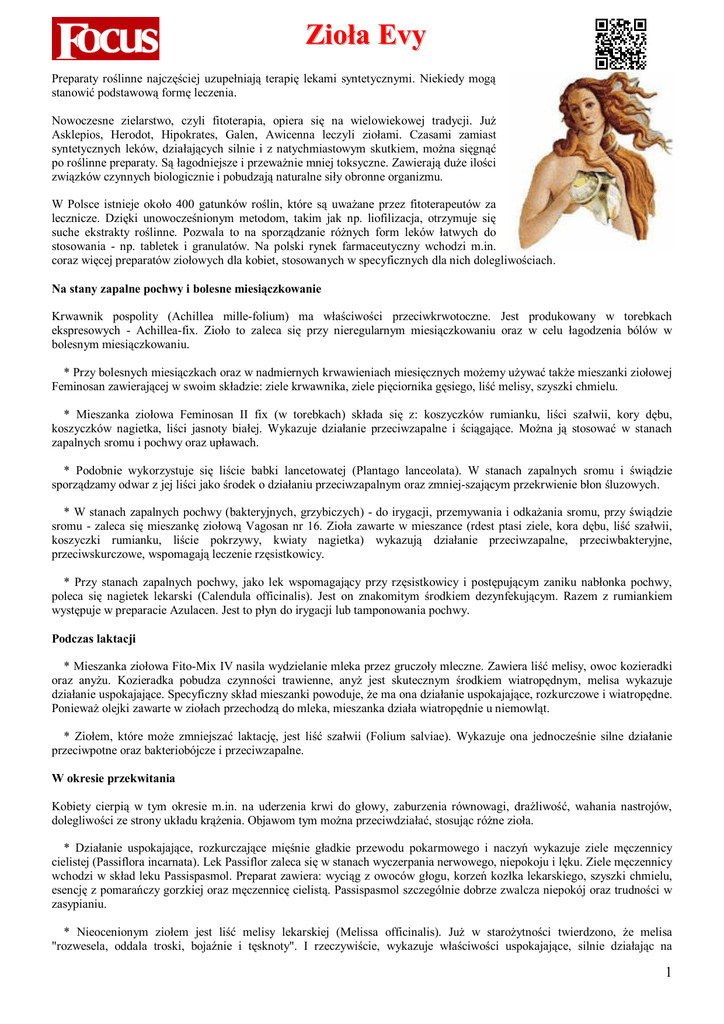 coraz więcej preparatów ziołowych dla kobiet, stosowanych w specyficznych dla nich dolegliwościach.