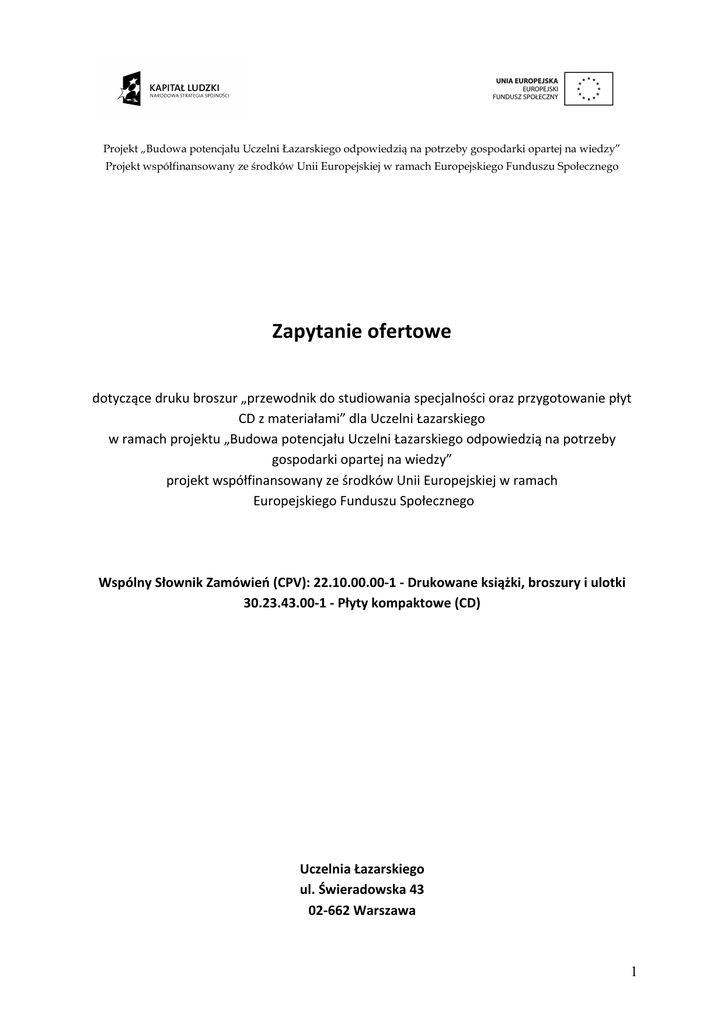 Zapytanie ofertowe - Uczelnia Łazarskiego