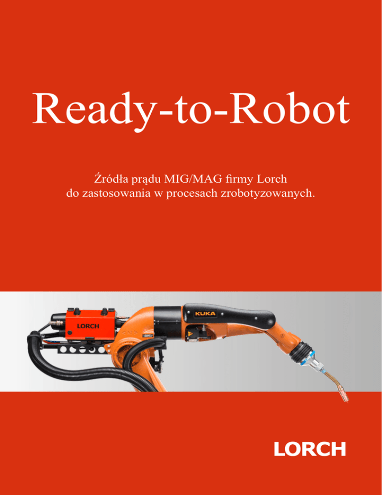 Ready-to-Robot Źródła prądu MIG/MAG firmy Lorch do zastosowania w procesach zrobotyzowanych. Popraw wydaj Systemy firmy Lorch pod nazwą Ready-to-Robot przy użyciu Twój wybór. Najlepsze rozwiązanie. Roboty spawalnicze przynoszą duże korzyści różnym gałęziom przemysłu, w wielu różnorodnych zastosowaniach - szczególnie przy produkcji na dużą skalę. Jednakże otwierają również nowe możliwości dla małych i średnich przedsiębiorstw. Robot pracuje z dużą dokładnością i jeżeli jest dobrze zintegrowany, potrafi być szczególnie elastyczny w momencie zmian w produkcji. I co ważniejsze, jego obsługa nie wymaga dużego nakładu siły roboczej. Pozwoli to na podniesienie konkurencyjności twojego przedsiębiorstwa. Firma Lorch wymyśliła ofertę Ready-to-Robot, aby już na początku ułatwić spawanie. Zarówno roboty znanych marek, takich jak ABB, Fanuc, Kuka Kawasaki czy Motoman mogą w bardzo prosty sposób być zintegrowane z maszynami spawalniczymi firmy Lorch, jak również doskonale sprawdzą się w współpracy z każdym innym systemem zrobotyzowanym czy zautomatyzowanym. W szczególności małe i średnie przedsiębiorstwa mają możliwość wyboru z pośród wielu produktów. Suma doświadczeń specjalistów od robotyki, inwentorów spawalniczych i uchwytów, pozwala nam na uzyskanie jak najlepszych efektów spawania. Stanowi to zaletę systemu Ready to Robot. Rezultatem jest elastyczność na najwyższym poziomie. Udaje się to dzięki pakietowi technologii Ready-to-Robot zapewniającemu doskonałe współdziałanie wszystkich elementów - od źródła prądu do podajnika drutu. Roboty stały się udogodnieniem dzięki technologii spawania stworzonej przez firmę Lorch. Inne systemy zrobotyzowane. ność spawania. zapewniają maksymalną elastyczność spawania robotów. RF-06 Obudowa podajnika dla robotów typu hollow wrist oraz standardowych robotów z zewnętrznym pakietem przewodów pośrednich. LorchNet Connector System połączenia wspiera wszystkie popularne protokoły od CANopen, przez DeviceNet do ProfiNet S-RoboMIG XT Wysokiej wydajności inwentory spawalnicze zaprojektowane na bazie technologii Saprom S-RoboMIG XT – gwarantuje Nasza innowacyjna koncepcja uaktualniania i mogą być uaktualnione Roboty z inwentorami spawalniczymi firmy Lorch oferują przełomowe korzyści w porównaniu z innymi produktami: ponieważ rozwijają się wraz z twoimi wymaganiami. Po prostu wybierz system, który jest tobie potrzebny do realizacji określonej aplikacji spawania. Każdy S-RoboMIG XT firmy Lorch jest dopasowany do twoich potrzeb zanim jeszcze opuści naszą fabrykę w Auenwald. Nie ma znaczenia, czy zdecydujesz się na zakup wersji podstawowej Synergicznej czy wersji Pulse, możesz być spokojny, że twój system może zostać zaktualizowany w momencie pojawienia się takiej potrzeby np. z powodu potrzeby zastosowania zaawansowanej metody spawania, Opcje sterowania która wymaga zastosowania procesu pulsacyjnego lub jeśli chcesz Indywidualny wybór wersji sterowania. zwiększyć produktywność swo- Panel sterowania w źródle, jako pilot jego systemu przez dodanie pro- zdalnego sterowania lub obie wersje cesów Lorch Speed. Nasza inno- jednocześnie jeśli jest to konieczne. wacyjna koncepcja uaktualniania sprawia, że jest to możliwe. SeamTracking - Śledzenie złącza Tolerancja materiału, niedoskonałości kształtu oraz nierówna powierzchnia stanowią przeszkody w osiągnięciu satysfakcjonujących rezultatów spawania ponieważ sprawiają, że utrzymanie jakości oraz powtarzalności wykonywanych spoin przy spawaniu zrobotyzowanym staje się niezwykle trudne. Im spawany detal jest większy oraz im dłuższa jest spoina, tym częściej pojawiają się problemy. Dostrzeżesz wtedy, że w pełni zaprogramowane stanowisko lub linia spawalnicza nie spełnia oczekiwań. Problem powinien zostać skorygowany w trakcie trwania procesu produkcyjnego, wtedy pojawia się idea śledzenia spoin, tam gdzie robot może uzyskać informację mówiącą o zmianie trajektorii spawania. Kosztowne wizualne systemy kontroli są jednym ze sposobów, aby uzyskać odpowiednią korektę przesuwu palnika. Innym sposobem jest kontrola parametrów spawania. Jednakże żadne urządzenia nie monitorują lepiej parametrów niż inwertory spawalnicze. Wysokiej klasy technologia kontroli parametrów zastosowana w S-RoboMIG XT używa szerokiej liczby informacji o parametrach do skalkulowania w czasie rzeczywistym sygnału, który może być oszacowany przez robota. Procedura ta ma zastosowanie zarówno w procesach standardowych jak i pulsacyjnych. Funkcja wykrywania oraz wyszukiwania spoin pozwala robotom na stałe dostosowywanie sterowania ruchem palnika oraz automatyczne przystosowanie do aktualnego stanu obrabianego materiału. Wygenerowany sygnał może być użyty do dopasowania sterowania uchwytu zarówno poziomo jak i pionowo. korzyści na przyszłość sprawia, że systemy są nowoczesne w każdym momencie. Dane techniczne 3. SpeedPulse XT upgrade Podczas wykorzystania procesów Lorch Speed Pulse uzyskujesz połączenie wysokiej wydajności spawania MIG-MAG przy łuku natryskowym + z jakością spoin zagwarantowaną przez technologię pulsacyjną. 2. Pulse upgrade Zakres prądu spawania 25 - 320 A Cykl pracy 100 % (40 °C) 250 A Cykl pracy 60 % (40 °C) 280 A Cykl pracy I max (40 °C) 40 % S5 RoboMIG XT Zakres prądu spawania 25 - 400 A Cykl pracy 100 %(40 °C) 320 A Cykl pracy 60 % (40 °C) 350 A Cykl pracy I max (40 °C) 50 % S8 RoboMIG XT Doskonała jakość spoiny oraz spawanie pozbawione odprysków stanowią wymierne korzyści w momencie zastosowania techno- + S3 RoboMIG XT logii pulsacyjnej przy spawaniu MIG-MAG. Zakres prądu spawania 25 - 500 A Cykl pracy 100 %(40 °C) 400 A Cykl pracy 60 % (40 °C) 500 A Cykl pracy I max (40 °C) 60 % 1. Synergic W oparciu o programy spawania MIG-MAG dla różnych materiałów, drutów, mieszanek gazów osłonowych sprawi