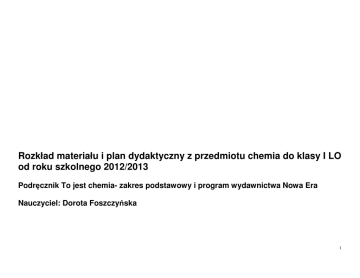Rozkład materiału i plan dydaktyczny z przedmiotu