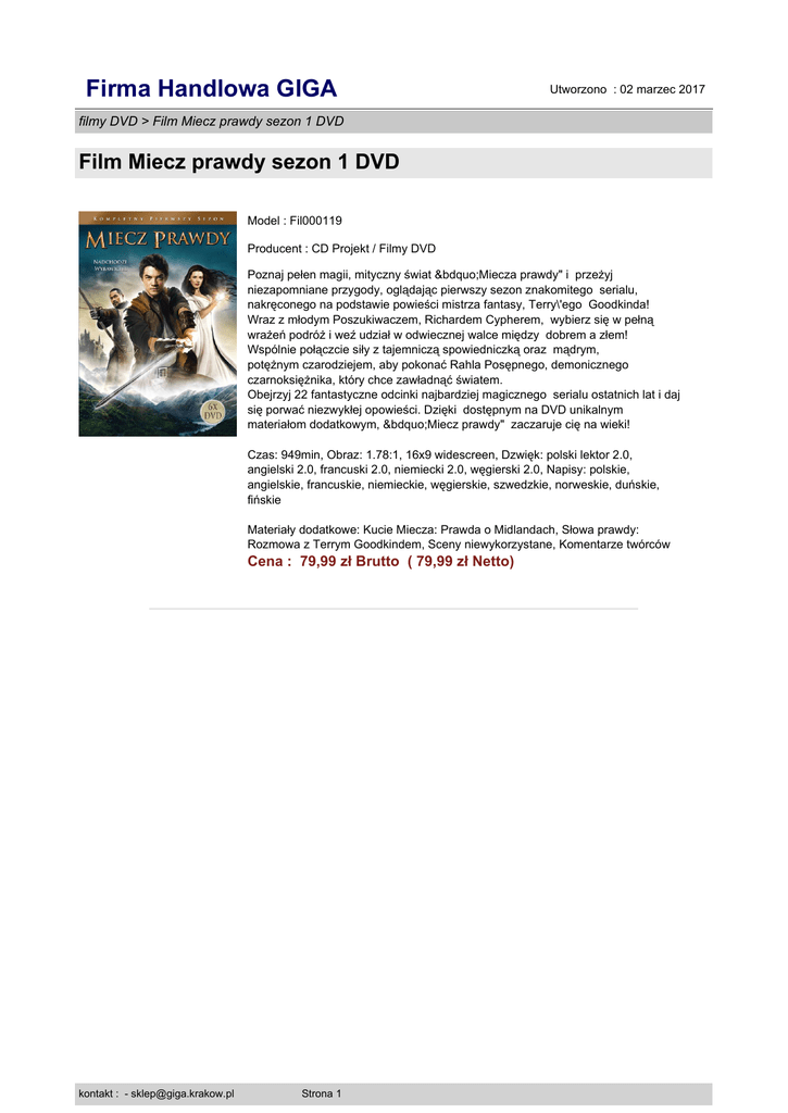 Film Miecz prawdy sezon 1 DVD