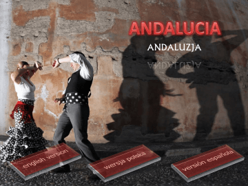 ANDALUZJA Andaluzja, to hiszpańska kraina słońca, flamenco, corridy, siesty i fiesty, w której odczuwa się tysiąclecia historii, gdzie kultura hiszpańska miesza się z arabską, gdzie niektóre obyczaje przywieźli ze sobą Persowie, gdzie na ruinach rzymskiej świątyni Herkulesa stawiali Maurowie swoje świątynie Allahowi, a te z kolei służyły za budulec dla chrześcijańskich kościołów. Stolicą Andaluzji jest Sewilla, inne większe miasta to: Kordoba, Málaga, Grenada, Kadyks i Jerez de la Frontera. Środkową i południowo-zachodnią część Andaluzji zajmuje płaska i falista Nizina Andaluzyjska, a na południowym wschodzie łańcuch Gór Betyckich, z pasmem Sierra Nevada. Andaluzję powinno się zwiedzić w całości, wszystkie większe miasta, oraz wiele maleńkich wiosek i miasteczek, które najlepiej oddają ten cudowny klimat południa. Nie jest to rozległy obszar, więc wystarczy dobry plan i chęci a pozna się wszystko co najpiękniejsze. Gdy raz zobaczy się Andaluzję, chęć powrotu będzie nieodparta. Ponieważ Andaluzja to najbardziej południowa część Hiszpanii i leży bardzo blisko Afryki, klimat tam panujący zbliżony jest do krajów afrykańskich. Andaluzja obejmuje prowincje: Jaén, Almería, Grenada, Huelva, Kadyks, Kordoba, Málaga, Sewilla. Ale oprócz tych wspaniałych miast nie można ominąć zgrupowanych wokół przepięknej Rondy położonej na dwóch masywach skalnych, białych miasteczek, takich jak Cartajima, Zahara de la Sierra, Arkos de la Fontera i wiele innych. Wszystkie są bielone i wszystkie maja niesamowity klimat. Spośród 11 hiszpańskich miejscowości rangi światowej pod względem ilości i klasy zabytków, trzy oglądać można właśnie w Andaluzji: - Grenada z Alhambrą, ogrodami Generalife i byłą dzielnicą arabską (kazbą) oraz Casa del Garbón jedynym oryginalnym arabskim karawanserajem z XIV w. -Kordoba - była stolica kalifatu muzułmańskiego, -z wieloma zabytkami, m.in. Mezquitą, juderią, 240metrowym rzymskim mostem przez Gwadalkiwir -z czasów Oktawiana Augusta i Alkazarem - dawną fortecą arabską. -Sevilla - czwarte co do wielkości miasto hiszpańskie, najbogatsze w zabytki i inne atrakcje, np. katedrę -z grobowcem Kolumba, najpiękniejszą -w Hiszpanii arenę do korridy, pałace, nabrzeża Gwadalkiwiru, Isla Magica - Magiczną Wyspę. Andaluzja to także olbrzymia baza turystyczna z przepięknymi plażami i miastami nastawionymi na turystów. -Costa del Sol - wybrzeże słońca - znajdują się tu zabytki kultury Maurów. Na Costa del Sol znajduje się ponad 30 pól golfowych, uważanych za najlepsze w Europie. Niebywałą atrakcją turystyczną jest również znajdujący się w pobliżu Gibraltar, z którego zaledwie krok dzieli od Maroka. W Andaluzji narodziło się flamenco, stąd wywodzi się tradycja ludowych zabaw i festynów, korrida. - Costa de la Luz - wybrzeże światła Andaluzja jest ojczyzną tańca flamenco, na każdym kroku można spotkać się z tym tańcem, czy to w barach, gdzie odbywają się potańcówki czy na słonecznych placach miast, gdzie ludzie nie wstydzą się tańczyć i cieszyć się życiem. Stąd wywodzi się także tradycja ludowych zabaw i festynów, corrida. Andaluzja może również pochwalić się architekturą, której przykładem może być Alhambra, czyli warowny zespół pałacowy zbudowany na terenie obecnej Grenady w XIII w. przez Nasrydów i rozbudowany w XIV w., arcydzieło architektury arabskiej w Hiszpanii, którą cechuje niezwykłe bogactwo dekoracji wnętrz, m.in. arkadowe galerie kolumnowe, stalaktytowe sklepienia, ściany wykładane płytkami azulejos i barwnymi stiukami z ornamentem oraz malowidła ścienne. Korrida - rytualna walka z bykiem, widowisko popularne w Hiszpanii, według niektórych zwyczaj sprowadzony na Półwysep Iberyjski przez Arabów, jednak w żadnym z państw muzułmańskich nie istnieje. Spór o korridę trwa od dziesięcioleci. Jej przeciwnicy twierdzą, że sprowadza się ona do torturowania zwierzęcia, które wykrwawia się ku uciesze tłumu. Natomiast zwolennicy, do których należy sam król Hiszpanii Juan Carlos, podkreślają, że corrida to wyjątkowa sztuka łącząca w spójną całość choreografię, kostium i muzykę. Matador jest przy tym niczym rzeźbiarz, który urabia nie glinę, lecz zwierzę. Fani na ringu dostrzegają nie tyle ból i cierpienie, ile piękno. Obecnie walka składa się z kilku uświęconych tradycją etapów: 1. Wpuszczenie byka na arenę. 2. Drażnienie byka przez torreadorow za pomocą czerwonej płachty. 3. Osłabianie mięśni szyi byka, aby ten trzymał głowę nisko przez pikadora. Robi to wbijając lancę 4. w grzbiet byka. 5. Gdy byk jest już zmęczony na arenę wkracza mattador. Kiedy upewni się że zwierze jest już bardzo zmęczone wbija mu szpadę w kark, doprowadzając byka do śmierci. 6. Nieżywy byk zostaje przykryty płachtą i zdjęty 7. z areny za pomocą osłów. W kuchni hiszpańskiej popularne są małe przekąski, które obecne są w jadłospisach od XIX wieku - tapas (nazywane czasami pinchos) stanowiły pierwotnie dodatek do sherry. Serwowane są w restauracjach jako dodatki do napojów. Hiszpania słynie z mięs na zimno ale i także z gorących dań złożonych z owoców morza, mięs lub warzyw. Cechą charakterystyczną jest tradycja spożywania tapas w barach (zwykle na stojąco przy barze) lub restauracjach - to właśnie tutaj przychodzą mieszkańcy, aby przy wspólnym posiłku spotkać się z przyjaciółmi. Tapa jest małym daniem, odpowiednim dla jednej osoby. Specyficzna jest kuchnia andaluzyjska, która zdominowana jest wyraźnie przez arabską tradycje. To właśnie Arabowie wprowadzili do niej wiele nowych przypraw i warzyw oraz winogrona, oliwki czy cytryny. Andaluzja słynie z mięsa przyrządzanego na rożnie. W wielu potrawach używa się papryki i pomidorów. Sałatki praktycznie obowiązkowo muszą być przyprawione octem z rodzimej sherry. Po