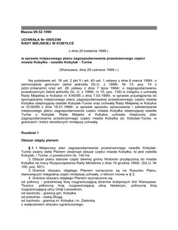Mazow.99.52.1990 UCHWAŁA Nr VIII/63/99 RADY MIEJSKIEJ W