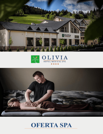 OFERTA SPA WARTO WIEDZIEĆ Rezerwacja zabiegów W celu rezerwacji zabiegów prosimy o kontakt z recepcją SPA. Rezerwacje dla gości hotelowych: wew. 501 Rezerwacje dla gości z zewnątrz: +48 (12) 274 39 71 Nasi terapeuci i kosmetyczki chętnie pomogą w wyborze zabiegów i masaży. Przybycie Prosimy o przybycie do SPA 10 minut przed umówioną wizytą. Spóźnienie W przypadku spóźnienia czas zabiegu może być krótszy, jeżeli są zarezerwowane kolejne zabiegi. Strój w SPA Prosimy o przybycie w szlafroku. Do zabiegów zapewniamy ręczniki oraz jednorazowe obuwie i bieliznę. Rezygnacja z zabiegu Prosimy o informację co do zmiany godziny zabiegu lub odwołanie rezerwacji co najmniej godzinę przed planowanym terminem. Kto może korzystać z zabiegów? Do korzystania z pełnej oferty zabiegów SPA zapraszamy osoby pełnoletnie. Goście w wieku poniżej 18 r.ż. mogą korzystać z wybranych zabiegów SPA za zgodą pełnoletniego opiekuna. Po zabiegu… Bezpośrednio po zabiegu należy poświęcić co najmniej jedną godzinę na odpoczynek. Zwróć uwagę, że… SPA to strefa ciszy i relaksu, dlatego prosimy o: - wyłączenie lub wyciszenie telefonów komórkowych, odbiorników radiowych i muzycznych, - w strefie zabiegowej prosimy o zachowanie ciszy, - prosimy o nie wnoszenie żywności, napoi i alkoholu oraz przestrzeganie zakazu palenia i spożywania alkoholu. KOSMETYKA I PIELĘGNACJA TWARZY W trosce o Twoje piękno Olivia Medical SPA oferuje zabiegi oparte na kosmetykach najlepszych światowych marek. Proponujemy szeroką gamę zabiegów, które pozwolą zadbać o zdrowie i piękno Twojej skóry. OILY SKIN Pielęgnacyjny zabieg dla cery tłustej i trądzikowej. Przywraca równowagę skóry tłustej, niwelując błyszczenie oraz oczyszczając pory. 60 min. 135 PLN 40 min. 80 PLN SKIN REGENERATION Zabieg na okolicę oczu z płatem kolagenowym. Wygładza zmarszczki, poprawiając kontur okolicy oka. Dodatkowe zabiegi na twarz Peeling kawitacyjny 15 min. 40 PLN Peeling kawitacyjny z odżywczą maską na twarz 35 min. 95 PLN Regulacja brwi 10 min. 15 PLN Henna + Regulacja 20 min. 30 PLN Depilacja wąsika 10 min. 15 PLN AQUATHERM Nawilżający zabieg z wodą termalną, dedykowany dla skóry wrażliwej i naczynkowej. Przywraca równowagę metabolizmu naskórka, koi i wzmacnia skórę. 60 min. 205 PLN 60 min. 165 PLN 60 min. 240 PLN 70 min. 260 PLN 60 min. 260 PLN 60 min. 205 PLN 60 min. 195 PLN ESSENTIAL Zabieg odżywczy z kolagenem morskim. Jest zastrzykiem podstawowych pierwiastków dla skóry, jednocześnie gwarantując zdrowie i piękny wygląd. POWER RETINOL Retinol jest aktywnym składnikiem o działaniu silnie odmładzającym i regenerującym. Nazywany płynnym złotem, jest szczególnie ceniony w zabiegach przeciwstarzeniowych. Linia Power Retinol to efekt przełomowych badań marki Skeyndor nad retinoidami. DERMA PEEL PRO + pielęgnacja dłoni Terapia odnawiająca powierzchnię skóry. Połączenie różnych technik złuszczania zapewnia niezwykłe efekty terapii. Głęboko oczyszcza skórę, usuwa martwe komórki naskórka oraz reguluje proces keratynizacji – odnowy komórkowej. Wspomaga walkę z bliznami potrądzikowymi, przebarwieniami i drobnymi zmarszczkami. Zabieg połączyliśmy z pielęgnacją dłoni aby wyrównać koloryt skóry i wygładzić dłonie. CORRECTIVE Terapia niwelująca zmarszczki mimiczne. Zaawansowana terapia botox-like, stanowiąca alternatywę dla efektów medycyny estetycznej. Bogactwo stymulujących peptydów, substancji wypełniających oraz głęboko nawilżającego kwasu hialuronowego, zapewnia natychmiastową poprawę owalu twarzy oraz wyraźne zwiększenie elastyczności. POWER HIALURONIC Terapia zwiększa zasoby wody, zarówno w tkance właściwej jak i w naskórku, poprawia funkcję obronną oraz pomaga regulować procesy złuszczania naskórka. Głęboko nawilża skórę oraz równocześnie chroni ją przed zbyt wczesną utratą wody. POWER C+ Koktajl przeciwdziałający suchości skóry, rozjaśnia przebarwienia oraz zwiększa jej elastyczność. Antyoksydacyjne działanie 15% witaminy C zostało wzbogacone o 6% wyciąg z Owocu Granatu. Po zabiegu skóra jest odżywiona i pełna blasku. ZABIEGI NA CIAŁO Oderwij się od rzeczywistości i codzienności. Spróbuj jednego z naszych Rytuałów, który będzie ucztą dla Twoich zmysłów i ciała. MUŚNIĘCIE ODPOCZYNKU (peeling, maska na ciało, masaż kamieniami) Program oczyszczający, który eliminuje toksyny. Posiada nadzwyczajne zdolności dostarczania oligoelementów, witamin i niezbędnych minerałów, pobudza metabolizm i wzmacnia skórę. Wzbogacony o hematyt, mający działanie regenerujące i naprawcze, ze zdolnością pobudzania mikrokrążenia. 90 min. 215 PLN 90 min. 215 PLN SZAFIROWY DOTYK (peeling, maska na ciało, masaż kamieniami) Zabieg o charakterze rewitalizującym, który zmiękcza, łagodzi i usprawnia układ mięśniowy. Wzbogacony o cząsteczki szafiru o właściwościach relaksacyjnych oraz korzystnie wpływających na pole magnetyczne. Rytuał KORZENNY - ROZGRZEWAJĄCY (peeling, kąpiel, wmasowanie balsamu) Rytuał oparty na orientalnym zapachu aromatycznych przypraw i ziół. Doskonale oczyszcza i odświeża oraz delikatnie rozgrzewa skórę. Uczucie relaksującego ciepła i zmysłowy aromat soczystej pomarańczy i pikantnej papryczki chili podczas masażu to prawdziwy eliksir dla ciała. 70 min. 185 PLN 80 min. 195 PLN 90 min. 215 PLN 45 min. 165 PLN 80 min. 205 PLN Rytuał CZEKOLADOWY RELAKS (peeling, maska na ciało, wmasowanie balsamu) Użyte w kosmetykach masło z kakao doskonale pielęgnuje i wzmacnia skórę a także opóźnia procesy jej starzenia. Czekolada posiada również potwierdzone właściwości brązujące i ujędrniające. Rytuał MLECZNE UKOJENIE (peeling, kąpiel, maska, wmasowanie balsamu) Jest to rytuał, który niweluje podrażnienia, koi przesuszona skórę i zapewnia jej komfort oraz nawilżenie. Może być stosowany jako S.O.S dla poparzone