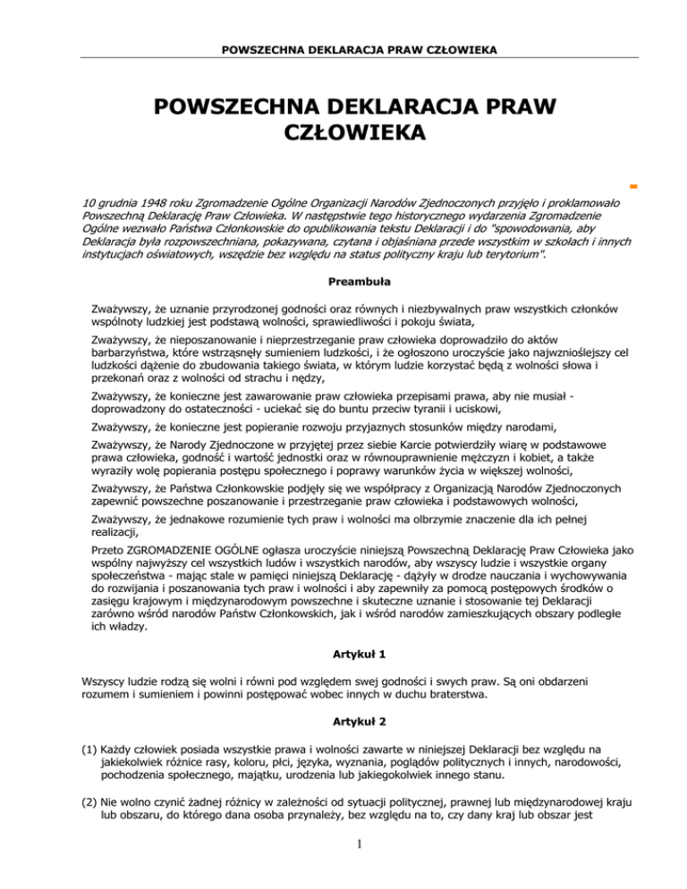 POWSZECHNA DEKLARACJA PRAW CZŁOWIEKA