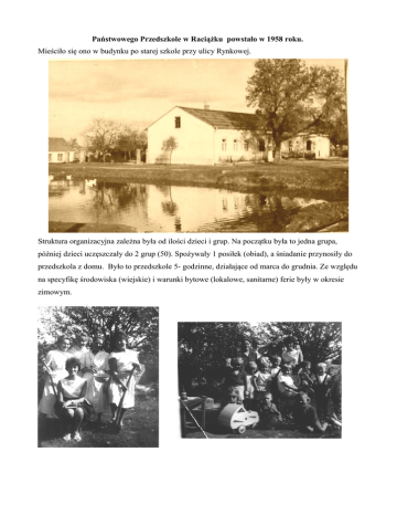 Państwowego Przedszkole w Raciążku powstało w 1958 roku