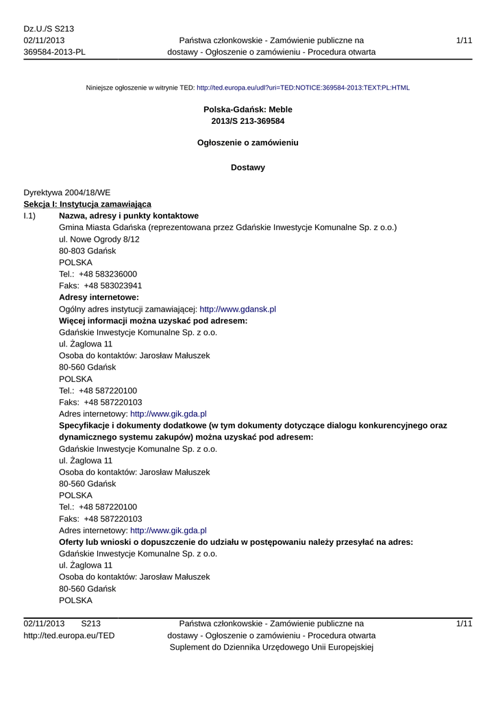 Polska-Gdańsk: Meble - Gdańskie Inwestycje Komunalne