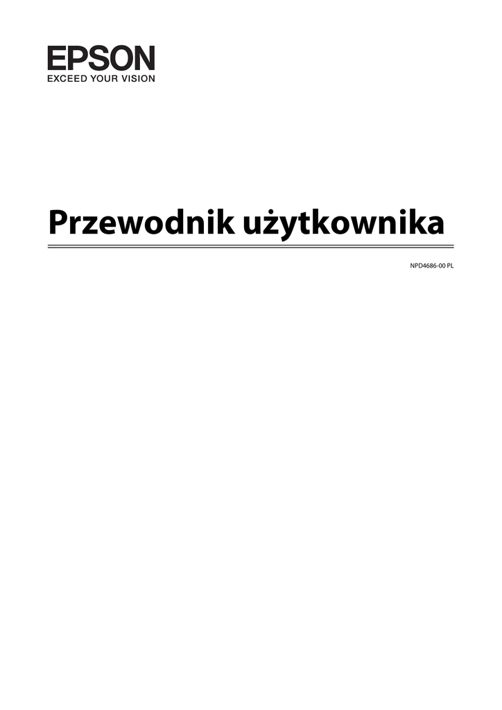 Przewodnik użytkownika NPD4686-00 PL Przewodnik użytkownika Prawa autorskie i znaki towarowe Prawa autorskie i znaki towarowe Prawa autorskie i znaki towarowe Żadna część niniejszej publikacji nie może być powielana, przechowywana w jakimkolwiek systemie wyszukiwania informacji ani przesyłana w żadnej formie za pomocą jakichkolwiek środków (elektronicznych, mechanicznych, fotokopii, nagrywania i innych) bez pisemnej zgody firmy Seiko Epson Corporation. Nie przewiduje się odpowiedzialności za naruszenie praw patentowych w związku z użyciem informacji zawartych w tej instrukcji obsługi. Nie przewiduje się również odpowiedzialności za szkody powstałe w wyniku skorzystania z informacji zawartych w tej instrukcji obsługi. Informacje zawarte w niniejszej dokumentacji przeznaczone są do użytku tylko z tym produktem firmy Epson. Firma Epson nie odpowiada za skutki stosowania tych informacji w odniesieniu do innych produktów. Ani firma Seiko Epson Corporation, ani firmy od niej zależne nie ponoszą odpowiedzialności przed nabywcą tego produktu ani osobami trzecimi za uszkodzenia, straty, koszty lub wydatki wynikające z wypadku, niewłaściwego użycia lub użycia produktu niezgodnie z przeznaczeniem albo niedozwolonej modyfikacji, naprawy lub zmian produktu, bądź (oprócz Stanów Zjednoczonych) nieprzestrzegania instrukcji firmy Seiko Epson Corporation, dotyczących obsługi i konserwacji. Firma Seiko Epson Corporation oraz jej partnerzy nie ponoszą odpowiedzialności za ewentualne uszkodzenia ani problemy, które wynikają z zastosowania urządzeń opcjonalnych lub materiałów eksploatacyjnych innych niż oznaczone przez firmę Seiko Epson Corporation jako Original Epson Products lub Epson Approved Products. Firma Seiko Epson Corporation nie ponosi odpowiedzialności za ewentualne uszkodzenia wynikające z zakłóceń elektromagnetycznych spowodowanych użyciem jakichkolwiek innych kabli interfejsu niż kable oznaczone przez firmę Seiko Epson Corporation jako Epson Approved Products. ® EPSON jest zarejestrowanym znakiem towarowym, a EPSON EXCEED YOUR VISION lub EXCEED YOUR VISION są znakami towarowymi firmy Seiko Epson Corporation. ™ PRINT Image Matching i znak PRINT Image Matching są znakami towarowymi firmy Seiko Epson Corporation. Copyright © 2001 Seiko Epson Corporation. Wszelkie prawa zastrzeżone. ® Intel jest zastrzeżonym znakiem towarowym firmy Intel Corporation. ® PowerPC jest zastrzeżonym znakiem towarowym firmy International Business Machines Corporation. Oprogramowanie Epson Scan jest oparte w części na pracy grupy Independent JPEG Group. libtiff Copyright © 1988-1997 Sam Leffler Copyright © 1991-1997 Silicon Graphics, Inc. Permission to use, copy, modify, distribute, and sell this software and its documentation for any purpose is hereby granted without fee, provided that (i) the above copyright notices and this permission notice appear in all copies of the software and related documentation, and (ii) the names of Sam Leffler and Silicon Graphics may not be used in any advertising or publicity relating to the software without the specific, prior written permission of Sam Leffler and Silicon Graphics. 2 Przewodnik użytkownika Prawa autorskie i znaki towarowe THE SOFTWARE IS PROVIDED "AS-IS" AND WITHOUT WARRANTY OF ANY KIND, EXPRESS, IMPLIED OR OTHERWISE, INCLUDING WITHOUT LIMITATION, ANY WARRANTY OF MERCHANTABILITY OR FITNESS FOR A PARTICULAR PURPOSE. IN NO EVENT SHALL SAM LEFFLER OR SILICON GRAPHICS BE LIABLE FOR ANY SPECIAL, INCIDENTAL, INDIRECT OR CONSEQUENTIAL DAMAGES OF ANY KIND, OR ANY DAMAGES WHATSOEVER RESULTING FROM LOSS OF USE, DATA OR PROFITS, WHETHER OR NOT ADVISED OF THE POSSIBILITY OF DAMAGE, AND ON ANY THEORY OF LIABILITY, ARISING OUT OF OR IN CONNECTION WITH THE USE OR PERFORMANCE OF THIS SOFTWARE. ® ® ® Microsoft , Windows i Windows Vista są zastrzeżonymi znakami towarowymi firmy Microsoft Corporation. ® ® ® ® Apple , Macintosh , Mac OS i OS X są zastrzeżonymi znakami towarowymi firmy Apple Inc. ® ® Nazwy i logo ABBYY i ABBYY FineReader są zarejestrowanymi znakami handlowymi firmy ABBYY Software House. Adobe, Adobe Reader, Acrobat i Photoshop są znakami towarowymi firmy Adobe Systems Incorporated, które mogą być zastrzeżone w pewnych jurysdykcjach. Uwaga ogólna: Inne nazwy produktów użyte w niniejszym dokumencie służą wyłącznie celom identyfikacyjnym i mogą być znakami towarowymi należącymi do ich właścicieli. Firma Epson nie rości sobie żadnych praw do tych znaków. Copyright © 2012 Seiko Epson Corporation. Wszelkie prawa zastrzeżone. 3 Przewodnik użytkownika Spis treści Spis treści Anulowanie drukowania. . . . . . . . . . . . . . . . . Pozostałe opcje. . . . . . . . . . . . . . . . . . . . . . . . . . Łatwe drukowanie fotografii. . . . . . . . . . . . . . Ustawienia wstępne produktu (tylko system Windows). . . . . . . . . . . . . . . . . . . . . . . . . . . . Druk dwustronny (tylko system Windows). . . Drukowanie z dopasowaniem do strony. . . . . . Drukowanie w trybie Pages per sheet (Stron na arkusz). . . . . . . . . . . . . . . . . . . . . . . . . . . . . . Udostępnianie produktu jako drukarki. . . . . . . . . Konfiguracja w systemie Windows. . . . . . . . . . Konfiguracja dla systemu Mac OS X. . . . . . . . . Prawa autorskie i znaki towarowe Prawa autorskie i znaki towarowe. . . . . . . . . . . . . . 2 Wprowadzenie Gdzie szukać informacji. . . . . . . . . . . . . . . . . . . . . 7 Przestrogi, ważne informacje i uwagi. . . . . . . . . . . . 7 Wersje systemu operacyjnego. . . . . . . . . . . . . . . . . 7 . 30 . 32 . 32 . 32 . 33 . 34 . 35 . 37 . 37 . 40 Ważne instrukcje Skanowanie Instrukcje dotyczące bezpieczeństwa. . . . . . . . . . . . 9 Zalecenia i ostrzeżenia dotyczące produktu. . . . . . . 9 Konfigurowanie/korzystanie z produktu. . . . . . . 9 Postępowanie z tuszem. . . . . . . . . . . . . . . . . . . 11 Ograniczenia dotyczące kopiowania. . . . . . . . . .