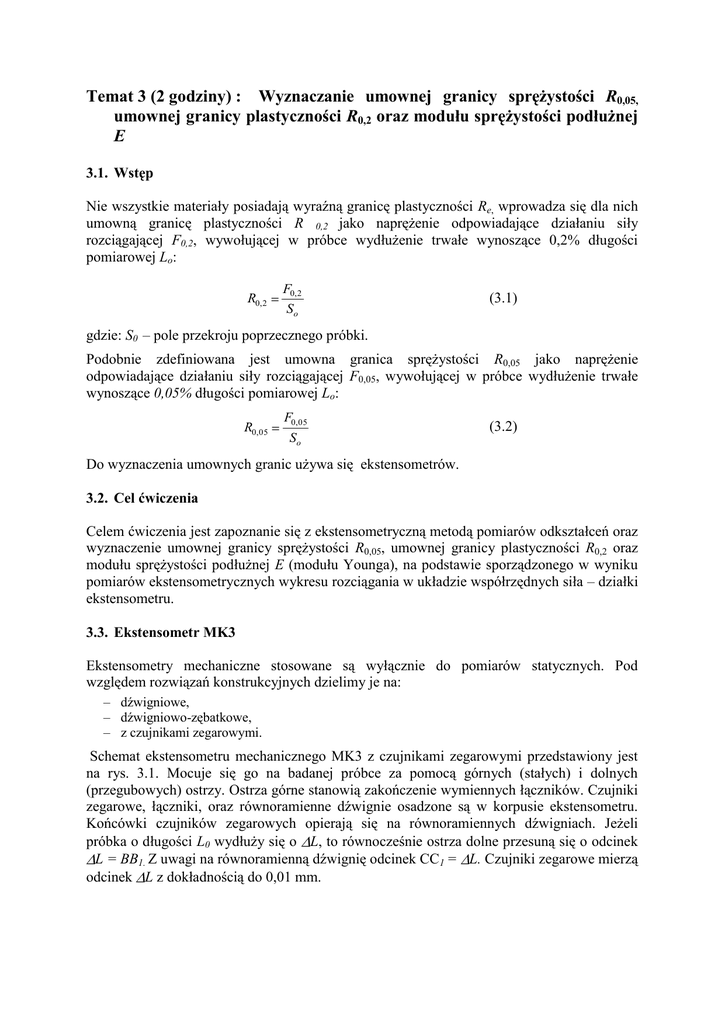 Temat 3 (2 godziny) : Wyznaczanie umownej granicy sprężystości