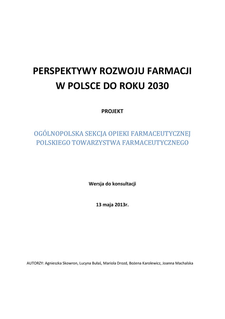 perspektywy rozwoju farmacji w polsce do roku 2030