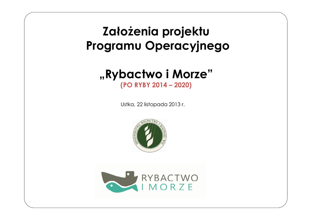 ZałoŜenia projektu Programu Operacyjnego „Rybactwo i Morze” (PO RYBY 2014 – 2020) Ustka, 22 listopada 2013 r. Cele tematyczne realizowane przez PO RYBY 2014 – 2020 CT 1 Wspieranie badań naukowych, rozwoju technologicznego i innowacji CT 3 Podnoszenie konkurencyjności MŚP, sektora rolnego oraz sektora rybołówstwa i akwakultury CT 6 Ochrona środowiska naturalnego i wspieranie efektywności wykorzystania zasobów w zakresie rybołówstwa i akwakultury CT 8 Wspieranie zatrudnienia i mobilności zawodowej pracowników CT 9 Wspieranie włączenia społecznego i walka z ubóstwem CT 11 Wzmacnianie potencjału instytucjonalnego i skuteczności administracji publicznej 2 Struktura PO RYBY 2014 - 2020 Projektowany Program Operacyjny „Rybactwo i Morze” zakłada realizację pięciu priorytetów: PRIORYTET I: PROMOWANIE ZRÓWNOWAśONEGO RYBOŁÓWSTWA ORAZ AKWAKULTURY ŚRODEK 1.1. Rybołówstwo • zmniejszenie oddziaływania rybołówstwa na środowisko morskie, • ochrona i odbudowa morskiej róŜnorodności biologicznej i ekosystemów morskich w ramach zrównowaŜonej działalności połowowej, • łagodzenie zmian klimatu, • inwestycje w portach rybackich, przystaniach, miejscach wyładunku słuŜące zmniejszeniu oddziaływania rybołówstwa na środowisko. ŚODEK 1.2. Akwakultura 3 • akwakultura świadcząca usługi w zakresie ochrony środowiska, • środki dotyczące zdrowia i dobrostanu zwierząt. Struktura PO RYBY 2014 - 2020 PRIORYTET II. INNOWACYJNE I KONKURENCYJNE RYBOŁÓWSTWO I AKWAKULTURA ŚRODEK 2.1. Innowacyjne rybołówstwo 4 Projekty innowacyjne w zakresie rybołówstwa morskiego i śródlądowego, Zdrowie i bezpieczeństwo na statkach rybackich, Rozpoczęcie działalności przez młodych rybaków, Projekty innowacyjne słuŜące ochronie morskich zasobów biologicznych, Inwestycje w portach rybackich, miejscach wyładunku i przystaniach mające na celu rozwój technologiczny i poprawę warunków bezpieczeństwa i higieny pracy, Rybołówstwo śródlądowe w zakresie modernizacji łodzi i gospodarstw śródlądowych, Jakość produktów i wartość dodana. Struktura PO RYBY 2014 - 2020 Środek 2.2. Innowacyjna akwakultura 5 Projekty innowacyjne w zakresie akwakultury, Inwestycje w akwakulturę prowadzoną na morzu i niezwiązaną z Ŝywnością, Nowe formy dochodów i wartość dodana, Usługi z zakresu zarządzania, zastępstw i doradztwa dla gospodarstw akwakultury, Promowanie kapitału ludzkiego i tworzenia sieci kontaktów, Zwiększanie potencjału terenów hodowli w ramach akwakultury, Ubezpieczenie zasobów akwakultury. Struktura PO RYBY 2014 - 2020 Środek 2.3. Środki dotyczące wprowadzania do obrotu i przetwarzania Plan produkcji i wprowadzania do obrotu, Dopłaty do przechowywania, Środki dotyczące wprowadzania do obrotu, Przetwarzanie produktów rybołówstwa i akwakultury. PRIORYTET III: WDRAśANIE WSPÓLNEJ POLITYKI RYBOŁÓWSTWA Środek 3.1. ZrównowaŜony rozwój rybołówstwa Wsparcie dla systemów przekazywalnych koncesji połowowych w ramach WPRyb, Wsparcie dla wdraŜania środków ochrony w ramach WPRyb. Środek 3.2. Kontrola i egzekwowanie oraz gromadzenie danych 6 Kontrola i egzekwowanie, Gromadzenie danych. Struktura PO RYBY 2014 - 2020 PRIORYTET IV: ZATRUDNIENIE I SPÓJNOŚĆ TERYTORIALNA NA OBSZARACH RYBACKICH Środek 4.1. ZrównowaŜony rozwój obszarów nadmorskich Usługi doradcze, Partnerstwa między naukowcami a rybakami, Promowanie kapitału ludzkiego i dialogu społecznego, Ułatwianie róŜnicowania działalności i tworzenia miejsc pracy, Nowe formy dochodów. Środek 4.2. ZrównowaŜony rozwój obszarów rybackich 7 Wsparcie z EFMR na rzecz zintegrowanego rozwoju lokalnego, Realizacja lokalnych strategii rozwoju (patrz: środek 4.1 !), Działania prowadzone w ramach współpracy. Struktura PO RYBY 2014 - 2020 PRIORYTET V: ZINTEGROWANA POLITYKA MORSKA Środek 5.1. Rozwój i wdraŜanie zintegrowanej polityki morskiej Przyczynianie się do osiągnięcia celów zintegrowanego nadzoru morskiego, Ochrona środowiska morskiego, Poprawa wiedzy na temat stanu środowiska morskiego. PRIORYTET VI: POMOC TECHNICZNA 8 Instytucje realizujące Instytucja zarządzająca (o której mowa w art. 113 ust. 1 projektu rozporządzenia „o wspólnych przepisach”) – podobnie jak to ma miejsce w obecnym okresie programowania 2007-2013, jest nią minister właściwy ds. rybołówstwa. Instytucja certyfikująca (o której mowa w 113 ust. 2 projektu rozporządzenia „o wspólnych przepisach”) – analogicznie jak to ma miejsce w obecnie wdraŜanym PO RYBY 2007-2013 funkcję tę pełni minister właściwy ds. finansów publicznych. Instytucja Audytowa (o której mowa w art. 113 ust. 4 projektu rozporządzenia „o wspólnych przepisach”)) – analogicznie jak to ma miejsce w obecnie wdraŜanym PO RYBY 2007-2013 funkcję tę pełni Generalny Inspektor Kontroli Skarbowej. Ponadto, wyodrębnia się następujące Instytucje pośredniczące: 9 ARiMR, samorządy województw, Jednostka sektora finansów publicznych lub fundacja, której jedynym fundatorem jest Skarb Państwa, wybrana zgodnie z trybem określonym w art. 162 ust. 4 ustawy o finansach publicznych. EFMR 2014-2020 - stan zaawansowania prac W lipcu 2013 r., na posiedzeniu Rady UE ds. Rolnictwa i Rybołówstwa przyjęto rozporządzenia o EFMR, podejście ogólne projektu We wrześniu 2013 r. odbyło się głosowanie plenarne nad poprawkami PE do projektu, W listopadzie 2013 r. rozpoczęły się tzw. trilogi pomiędzy KE, Radą UE oraz PE – uzgodnienie ostatecznego tekstu planuje się na koniec 2013 r. 10 Podsumowanie uwag do PO RYBY 2014-2020 Uwagi Ogólne: Brak wskazania podziału środków finansowych na poszczególne priorytety, środki i działania PO, Komplementarność: dookreślenie działań realizowanych z innych funduszy, Brak określenia wskaźników w PO, Zastosowanie trybu konkursowego wyboru operacji, Wprowadzenie komitetu sterującego, Uszczegółowienie opisu poszczeg