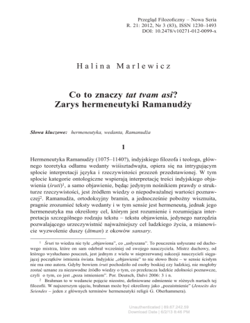 Co to znaczy tat tvam asi? Zarys hermeneutyki Ramanudży