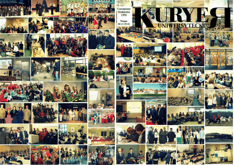 Czasopismo Uczelniane Uniwersytetu Przyrodniczo-Humanistycznego w Siedlcach Ukazuje sie przy Uczelnianym Ośrodku Kultury OD REDAKCJI Projekt i wykonanie okładki: Agnieszka Kołodziejczyk Autorami zdjęć na okładce są: Paulina Chojewska, Agnieszka Kołodziejczyk, Karolina Kowalczyk, Jarosław Kurzawa, dr Rafał Roguski, Antoni Wróblewski Korekta: Agnieszka Kołodziejczyk Opiekun redakcji: mgr Tadeusz Goc Za strony rektorskie odpowiada: dr Adam Bobryk Tel. 644-20-48 Redakcja zastrzega sobie prawo do dokonywania skrótów oraz zmian tytułów otrzymanych tekstów. Materiałów niezamówionych nie zwracamy! Opinie poszczególnych autorów nie odzwierciedlają opinii redakcji jako całości. Za treść i poziom materiałów odpowiadać mogą wyłącznie ich autorzy. Wszystkie wywiady, publikowane w Kuryerze Uniwersyteckim są autoryzowane. Kontakt z redakcją: DS-4, ul. Żytnia 17/19 pok. 413 Tel. 643-17-74 Red. naczelna – [email protected] ISSN 1507-2118 www.kuryer.uph.edu.pl e-mail: [email protected] Skład i typografia: Jolanta Szymczyk Zagadka „Milioner” Pewien początkujący businessman opracował następujący Obrazki logiczne Zamaluj niektóre kratki według podanych liczb. Liczby odpowiadają grupom pól, które należy zamalować (np. 3 oznacza grupę trzech zamalowanych pól). Między grupami pól musi być co najmniej jedno pole puste. Kolejność grup musi się zgadzać z kolejnością liczb. Redaguje kolegium: Agnieszka Kołodziejczyk (red. nacz.) Rafał Laszuk Karolina Kowalczyk Patrycja Rucińska Sławomir Wierzbicki Magdalena Zagrodzka Współpracownicy: Anna Bartoszuk Honorata Borkowska mgr inż. Agata Danielewicz Artur Długosz Natalia Dwurnik Dorota Dziubak Konrad Krawczyk Aleksandra Pietrusiak Paweł Stempniak Marcin Szpetmański Bartosz Talma Łukasz Tkaczuk Bartosz Uziębło Piotr Warowny ROZRYWKA Przykład: plan. Będzie kupowa kokosy po 5zł/kg, a sprzedawał po 3zł/kg. Po 2 latach działalności, został milionerem. Pytanie: Jak to zrobił? (Nie miał żadnych innych dochodów) Kto co pali ? Państwo Kowalscy siedzą przy stole z ich miłym gościem. Mówią właśnie o papierosach i z rozmowy okazuje się, że dwie osoby pala Dukaty, dwie pala Giewonty i dwie Wczasowe. Pani nie pali Wczasowych, Giewontów, a kto nie pali Dukatów, nie pali także Giewontów. Pytanie: Jakie papierosy pali każda z trzech osób? Test IQ Weź kartkę papieru i ołówek. Kochani Czytelnicy ! Z radością oddajemy w Wasze ręce najnowszy numer Kuryera. Przeczytacie w nim między innymi o Poradniku Studenta, konferencji naukowej z Vincentym V. Severskim, VIII edycji konkursu Liga Menedżerów Biznesu, a także o Spotkaniu Naukowym „Zbrodnia Katyńska-pamiętamy”, które nasza gazeta objęła patronatem medialnym. Zapraszam do włączenia się do akcji „Dla Ciebie to 5 minut, dla Kogoś to całe życie”, którą Kuryer wspólnie z Biurem Karier UPH i kilkoma kołami naukowymi planuje zorganizować w naszej uczelni. Pragnę również serdecznie podziękować Arturowi Długoszowi za odbudowanie naszej strony internetowej i zachęcić wszystkich do jej odwiedzenia. Szukajcie siebie i swoich znajomych na okładce Kuryera. Piszcie do nas i przysyłajcie zdjęcia a razem utworzymy pełną naszych studenckich wspomnień końcową okładkę kolejnego numeru. Wy także możecie być częścią naszej gazety. Od Studenta dla Studenta.. Agnieszka Kołodziejczyk 1.Policz litery w swoim imieniu, jeśli wynik jest wiekszy lub rówy 7 odejmij 3, a jeśli jest mniejszy – dodaj 4. Jeśli masz dwa imiona, użyj tylko piewszego z nich. 2.Zrób to samo z nazwiskiem. 3.Zanotuj obydwa wyniki i pomnoż jeden pzez drugi. 4. Do wyniku dodaj dzień i miesiąc twoich urodzin. Teraz prawą ręką zgnieć kartkę i odrzuć ja jak najdalej. Zamknij oczy i powidz na głos: „Panie, daj mi siły, abym mógł przestać zajmować się takimi perdołami i zaczął w końcu pracować.” Powodzenia w nowym semestrze :) P.R. Liga Mened¿erów Biznesu 2014 W dniach 7-8 maja 2014 roku odbêdzie siê d³ugo wyczekiwane przez wszystkich studentów wydarzenie – VIII edycja Ogólnopolskiego Konkursu LIGA MENED¯ERÓW BIZNESU ! Konkurs organizowany jest przez Wydzia³ Nauk Ekonomicznych i Prawnych Uniwersytetu Przyrodniczo-Humanistycznego w Siedlcach oraz Studenckie Ko³o Naukowe Mened¿erów TOP MANAGER dzia³aj¹ce przy Instytucie Zarz¹dzania i Marketingu. Kreatywnoœæ cz³onków SKNM Top Manager nie zna granic, dlatego tegoroczna edycja LMB jest pe³na nowoœci. Po pierwsze Liga bêdzie trwa³a 2 dni. Pierwszego dnia o godz. 10.00 w sali 101 w budynku Biblioteki G³ównej UPH w Siedlcach bêdziemy mogli byæ œwiadkami rywalizacji szeœciu trzyosobowych dru¿yn oraz uczestniczyæ w wieczornym spotkaniu integracyjnym. Natomiast na drugi dzieñ LMB zaplanowane s¹ dwa certyfikowane szkolenia dla uczestników. Kolejnym dowodem na to, ¿e to przedsiêwziêcie ca³y czas siê rozwija jest poszerzenie formy konkursu o jedn¹ konkurencjê. Konkurs nie bêdzie siê sk³ada³ z trzech, lecz z czterech oddzielnie punktowanych etapów. Podczas pierwszego z nich, wszystkie zespo³y prezentuj¹ przygotowany wczeœniej projekt, w drugim etapie uczestnicy bior¹ udzia³ w quizie tematycznym, natomiast trzeci etap to krótka rozmowa biznesowa w jêzyku angielskim. Do fina³u przechodz¹ dwa zespo³y, które zbior¹ najwiêksz¹ liczbê punktów we wczeœniejszych konkurencjach. Ponadto, swój udzia³ w konkursie potwierdzi³y ju¿ dru¿yny z innych uczelni, wiêc zapowiada siê zaciêta rywalizacja. Serdecznie zapraszamy wszystkich studentów do wziêcia udzia³u w konkursie. Osoby zainteresowane prosimy o przes³anie skanu wype³nionego arkusza zg³oszeniowego z piecz¹tk¹ reprezentowanej uczelni do dnia 30 marca 2014 roku na adres: [email protected]. Arkusz zg³oszeniowy oraz regulamin konkursu dostêpny jest na stronie internetowej www.topmanager.uph.edu.pl. Poœpiesz siê, o mo¿liwoœci wziêcia udzia³u w LMB de