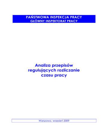 PAŃSTWOWA INSPEKCJA PRACY GŁÓWNY INSPEKTORAT PRACY Analiza przepisów regulujących rozliczanie czasu pracy Warszawa, wrzesień 2009 Przepisy o czasie pracy stanowią wyjątkowo trudny obszar unormowań w krajowym porządku prawnym i mimo wielu dokonanych już zmian, podyktowanych koniecznością dostosowania regulacji do gospodarki rynkowej i prawa unijnego – ich funkcjonowanie w praktyce nadal budzi wątpliwości i dyskusje zarówno wśród pracodawców, jak i pracowników. Pracodawcy formułują argumenty mówiące o trudnościach interpretacyjnych i niespójności przepisów, a pracownicy – wskutek braku skuteczności prawa w tym zakresie – nie są objęci należytą ochroną prawną i nie otrzymują np. wynagrodzenia za pracę w godzinach nadliczbowych czy też pracują wbrew przepisom o odpoczynku dobowym i tygodniowym. Poniżej przedstawiamy skrótową analizę budzących najwięcej kontrowersji – zdaniem inspektorów pracy - przepisów regulujących rozliczanie czasu pracy, które zawarte są w Kodeksie pracy, ustawie o zakładach opieki zdrowotnej oraz ustawie o czasie pracy kierowców. Kodeks pracy • Art. 129 § 1 Kp w związku z art. 151 § 1 Kp – norma a wymiar – godziny nadliczbowe Przepis art. 129 Kp określa obowiązujące normy czasu pracy. Są one stałe i nie ulegają obniżeniu w związku z występowaniem w okresie rozliczeniowym świąt; art. 151 Kp formułuje natomiast legalną definicję pracy w godzinach nadliczbowych. Nadal jednak występują kontrowersje dotyczące sposobu obliczania liczby godzin nadliczbowych, zgodnie z art. 130 Kp, za pracę wykonywaną ponad obowiązujący pracownika wymiar czasu pracy, w sytuacji obniżenia wymiaru czasu pracy w związku ze świętami wypadającymi w innym dniu niż niedziela. W takim jednak przypadku norma średniotygodniowa wynosi 40 godzin. Bardzo często w okresach rozliczeniowych, w których święto wypada w innym dniu niż niedziela, pracodawcy polecają pracownikom pracę w szóstym dniu tygodnia (dzień wolny z tytułu pięciodniowego tygodnia pracy) i wypłacają pracownikom jedynie normalne wynagrodzenie za każdą przepracowaną godzinę, bez dodatku za pracę w godzinach nadliczbowych. Przepisy wymagają doprecyzowania – poprzez zapisanie w definicji godzin nadliczbowych (art. 151 § 1 Kp), iż w powyższej sytuacji praca ponad wymiar (w sytuacji gdy w okresie rozliczeniowym występuje święto w innym dniu niż niedziela) jest również pracą w godzinach nadliczbowych, a po uwzględnieniu przekroczeń dobowych – pracą nadliczbową wynikającą z przekroczenia normy średniotygodniowej. str. 2 Brak legalnych definicji pojęć „norma” i „wymiar” czasu pracy oraz brak konsekwencji w ich stosowaniu w pozostałych przepisach o czasie pracy, rodzą wątpliwości. Wskazane niedoskonałości prawa skutkują w praktyce kwestionowaniem przez pracodawców zasadności rozstrzygnięć inspektorów pracy dotyczących konieczności naliczania i wypłacania wynagrodzenia wraz z dodatkiem za pracę w godzinach nadliczbowych w tych okresach rozliczeniowych, w których wystąpiło święto w innym dniu niż niedziela. • Art. 132 § 3 Kp – równoważenie naruszonego prawa do 11-godzinnego odpoczynku dobowego (czy pracodawca, oddając zaległy odpoczynek, może skrócić czas pracy pracownika?) Powyższy przepis mówi o obowiązku pracodawcy dotyczącym równoważenia/oddawania naruszonego prawa do 11–godzinnego odpoczynku dobowego do końca okresu rozliczeniowego. Z regulacji kodeksowej nie wynika powinność zrównoważenia odpoczynku dobowego bezpośrednio po zakończeniu dniówki pracowniczej. Problem pojawia się jednak, gdy pracownik wykonuje swoją pracę do późna w nocy, np. usuwając awarię. W świetle obowiązujących przepisów prawa, jego powrót do pracy w godzinach porannych budzi kontrowersje z uwagi na zbyt krótki czas na regenerację sił. Zasadna byłaby zmiana przepisów kodeksowych dot. oddawania naruszonego okresu odpoczynku bezpośrednio po wykonaniu pracy w przedłużonym dobowym wymiarze czasu pracy. W tym jednak miejscu rodzi się problem związany z wynagrodzeniem pracownika; nie ma bowiem przepisu, który gwarantowałby mu w takim przypadku zachowanie wynagrodzenia za czas wolny. Tę sprawę mogłaby uporządkować nowelizacja art.132 § 3 Kp. • Art. 132 Kp – powrót pracownika z delegacji w późnych godzinach nocnych a odpoczynek dobowy Sytuacja podobna jak w omówionym wcześniej przykładzie. Czy pracownik wracający z podróży służbowej, np. o godz. 200, ma prawo do 11-godzinnego nieprzerwanego odpoczynku, czy też musi się stawić do pracy po 8 godzinach (rozporządzenie MPiPS z dnia 15 maja 1996 r. w sprawie sposobu usprawiedliwiania nieobecności w pracy oraz udzielania pracownikom zwolnień od pracy). Jeżeli jednak rozpocznie swój dzień pracy później, to czy należy mu się wynagrodzenie za czas nieprzepracowany z związku z wykorzystaniem pełnego odpoczynku dobowego? Czy pracodawca ma prawo skrócić dzień pracy pracownika i zapłacić tylko za czas przepracowany? str. 3 • Art. 149 Kp – skonkretyzowanie treści ewidencji czasu pracy prowadzonej przez pracodawcę Przepis nakłada na pracodawcę obowiązek prowadzenia ewidencji czasu pracy pracownika do celów prawidłowego ustalenia jego wynagrodzenia i innych świadczeń związanych z pracą. Nie reguluje jednak kwestii zakresu informacji, jakie powinny się znaleźć w ewidencji czasu pracy. Ewentualna zmiana przepisu powinna dotyczyć wyliczenia podstawowych kryteriów, jakie ewidencja ma spełniać. Ogólnikowy charakter przepisu pozwala na dużą dowolność w uznawaniu określonych, związanych z czasem pracy dokumentów pracodawcy jako „ewidencji czasu pracy”. Wprowadzenie dodatkowego obowiązku określania godzin rozpoczynania i kończenia dniówki pracowniczej pozwoliłoby na skuteczniejsze wyliczenie godzin nadliczbowych. • Art. 151 § 5 Kp – praca ponadnormatywna praco