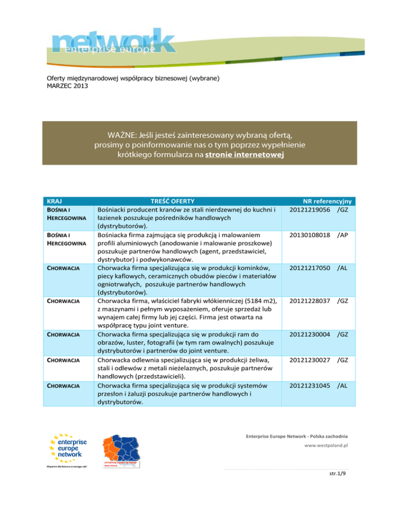 KRAJ TREŚĆ OFERTY NR referencyjny Bośniacki producent