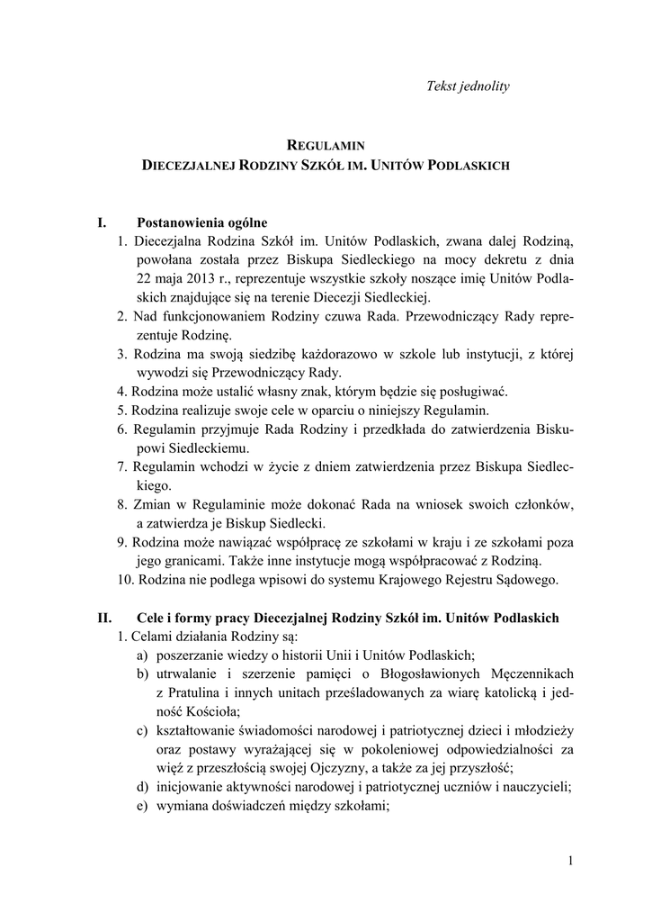 Regulamin Diecezjalnej Rodziny Szkół im. Unitów Podlaskich