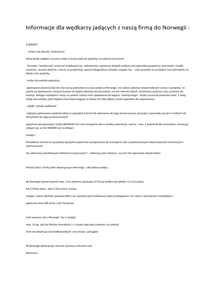 Informacje dla wędkarzy jadących z naszą firmą do Norwegii :
