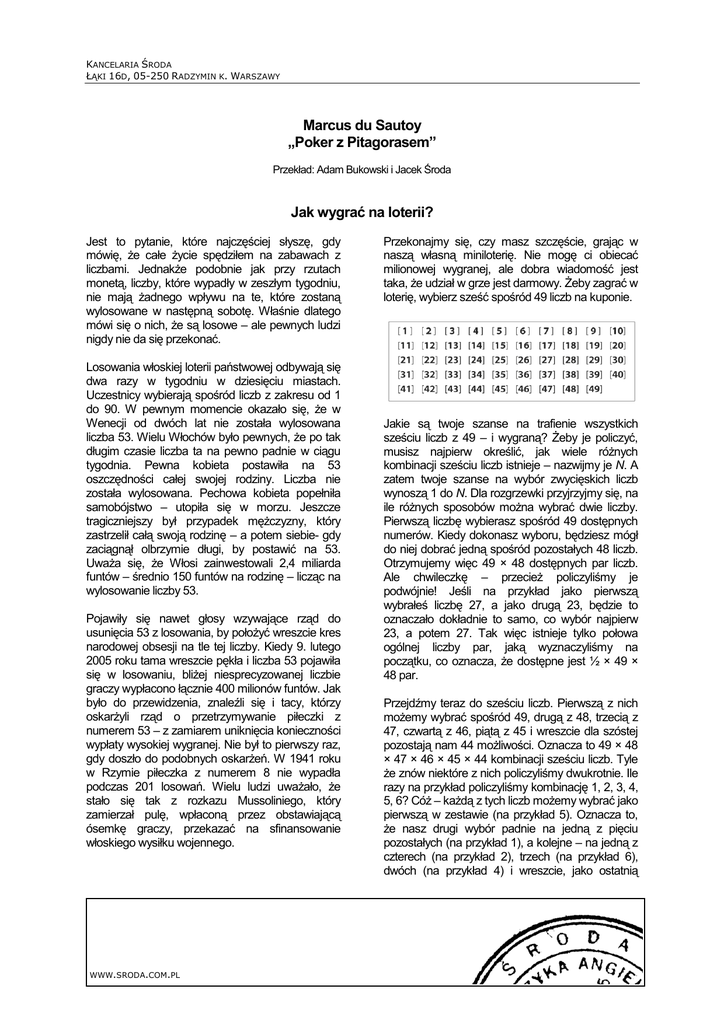Marcus du Sautoy „Poker z Pitagorasem” Jak wygrać na loterii?