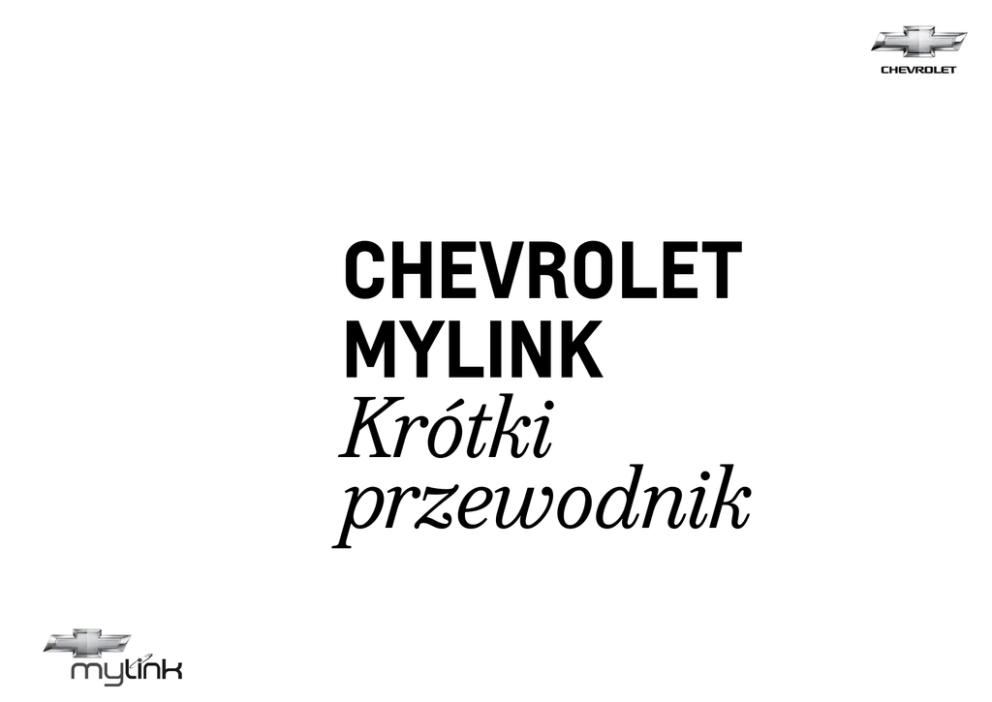 CHEVROLET MYLINK Krótki przewodnik Chevrolet MyLink to system informacyjno-multimedialny, który poprawia komfort jazdy dzięki prostym złączom, możliwości zintegrowania smartfona oraz 7-calowemu ekranowi dotykowemu o wysokiej rozdzielczości. ODKRYJ ROZMAITE MOŻLIWOŚCI SYSTEMU CHEVROLET MYLINK: POŁĄCZ SIĘ ZE ŚWIATEM • Zestaw głośnomówiący • Dostęp do całej książki adresowej oraz spersonalizowanych list odtwarzania ODDAJ SIĘ ROZRYWCE • Odtwarzaj muzykę z telefonu za pomocą złącza Bluetooth • Oglądaj pliki wideo oraz spersonalizowane galerie zdjęć dzięki złączom USB/AUX PRZEJMIJ KONTROLĘ • 7-calowy ekran dotykowy o wysokiej rozdzielczości • Przyciski sterowania w kierownicy • Funkcja rozpoznawania głosu (dostępna wkrótce) PODŁĄCZ SIĘ DO SYSTEMU CHEVROLET MYLINK POPRZEZ BLUETOOTH®: PODŁĄCZ TELEFON: POPRZEZ ZŁĄCZA USB/AUX PORT: tylko w przypadku pierwszego podłączenia Podłącz kompatybilne urządzenie do wejścia USB/AUX W TELEFONIE: WŁĄCZ BLUETOOTH W CHEVROLET MYLINK: MENU HOME >USTAWIENIA > USTAWIENIA POŁĄCZEŃ Użytkownicy iPhone’ów/iPodów: - odtwarzaj muzykę poprzez port USB - odtwarzaj filmy/pokazy slajdów poprzez wejście AUX* USTAWIENIA BLUETOOTH > PAROWANIE URZĄDZEŃ WYBIERZ „TAK”, ABY POŁĄCZYĆ POPRZEZ BLUETOOTH WYSZUKAJ URZĄDZENIA BLUETOOTH >WYBIERZ ŻĄDANE URZĄDZENIE OBSŁUGA SSP JEŚLI JEST WYBIERZ „TAK” JEŚLI NIE MA WPROWADŹ PIN W TELEFONIE/ URZĄDZENIU MULTIMEDIALNYM TWOJE URZĄDZENIE ZOSTAŁO SPAROWANE Od tej chwili za każdym razem, gdy funkcja Bluetooth w smartfonie będzie włączona, telefon automatycznie połączy się z systemem MyLink. W przypadku wielu urządzeń z modułem Bluetooth system połączy się z urządzeniem, które sparowano jako pierwsze. * Dodatkowe akcesoria potrzebne do uzyskania połączenia. OBSŁUGA FUNKCJI TELEFONU MENU HOME TELEFON KLAWIATURA Wprowadź żądany numer i naciśnij , aby zadzwonić KSIĄŻKA ADRESOWA CALL HISTORY Użyj, aby przewinąć listę Ustaw opcje szybkiego wybierania, aby łatwo zadzwonić do najczęściej wybieranych kontaktów Naciśnij, aby odszukać nazwę kontaktu, a następnie wpisz nazwę za pomocą klawiatury Wybierz aby wyświetlić połączenia wychodzące, aby wyświetlić połączenia nieodebrane lub aby wyświetlić połączenia odebrane TRYB PRYWATNY/FUNKCJA WYCISZANIA W TRAKCIE ROZMOWY NACIŚNIJ - aby przejść do trybu prywatnego - aby powrócić do trybu głośnomówiącego NACIŚNIJ - aby wyciszyć/wyłączyć OGLĄDAJ ZDJĘCIA I FILMY MENU HOME ZDJĘCIA I FILMY ŹRÓDŁO USB (zdjęcia) Oglądaj zdjęcia zapisane na urządzeniu USB USB (filmy) Oglądaj filmy zapisane na urządzeniu USB AUX (filmy) Oglądaj filmy zapisane na urządzeniu ze złączem AUX Funkcje dostępne tylko podczas postoju lub podczas jazdy z prędkością poniżej 8km/h. AUDIO MENU HOME AUDIO ŹRÓDŁO AM FM WYBIERZ PASMO I SŁUCHAJ WYBIERZ PASMO I SŁUCHAJ AUX BLUETOOTH ODTWARZAJ MUZYKĘ Z PODŁĄCZONEGO URZĄDZENIA WYBIERZ URZĄDZENIE Z MODUŁEM BLUETOOTH USB ODTWARZAJ MUZYKĘ Z PODŁĄCZONEGO URZĄDZENIA ODTWARZAJ MUZYKĘ Z PODŁĄCZONEJ PAMIĘCI USB ODTWARZAJ MUZYKĘ Z iPoda/ iPhone’a SPERSONALIZUJ SWOJE USTAWIENIA MENU HOME USTAWIENIA USTAWIENIA CZASU I DATY Zmiana czasu i daty USTAWIENIA RADIA Zmiana ustawień radia USTAWIENIA POŁĄCZEŃ Podłączanie za pomocą funkcji Bluetooth Zmiana dzwonka Regulacja głośności dzwonka PRZYCISKI STEROWANIA W KOLE KIEROWNICY Przewijanie książki adresowej oraz list odtwarzania muzyki/filmów Naciśnij, aby prowadzić rozmowę/wypowiadać komendy głosowe/ odbierać połączenia Regulacja głośności Naciśnij, aby wyciszyć/odrzucić połączenia SYNCHRONIZACJA ZE SMARTFONEM Zainstaluj w smartfonie odpowiednią aplikację (BringGo*, TuneIn, Stitcher TM, Siri - dostępna tylko w iPhone) Po zainstalowaniu podłącz smartfon za pomocą złącza USB lub Bluetooth - iPhone: użyj złącza USB - Telefon z systemem Android/ BlackBerry: skorzystaj z technologii połączeń bezprzewodowych Bluetooth Dostęp do aplikacji MENU HOME SYNCHRONIZACJA ZE SMARTFONEM DOSTĘP DO APLIKACJI *Dostępność aplikacji różni się w zależności od regionu. Korzystanie z aplikacji BringGo podlega opłatom zależnym od regionu. ODŁĄCZANIE/USUWANIE URZĄDZENIA BLUETOOTH MENU HOME USTAWIENIA USTAWIENIA POŁĄCZEŃ USTAWIENIA BLUETOOTH PAROWANIE URZĄDZEŃ NACIŚNIJ NAZWĘ URZĄDZENIA, KTÓRE CHCESZ ODŁĄCZYĆ NACIŚNIJ „WYKASUJ” NACIŚNIJ „OK”, ABY ODŁĄCZYĆ URZĄDZENIE NACIŚNIJ „TAK”, ABY USUNĄĆ URZĄDZENIE Dane osobowe przechowywane przez system zostaną usunięte po odłączeniu/usunięciu urządzenia. www.chevrolet.pl Aby uzyskać więcej informacji, zadzwoń pod numer: + 48 222091728