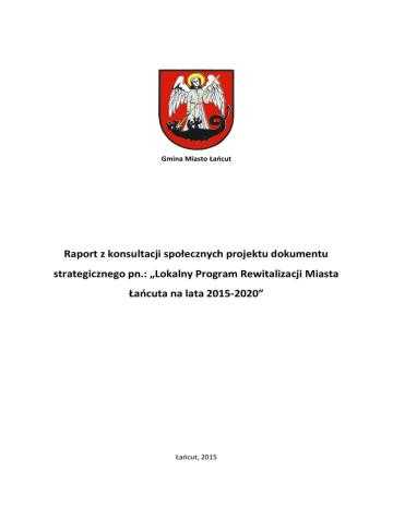 Gmina Miasto Łańcut Raport z konsultacji społecznych projektu dokumentu strategicznego pn.: „Lokalny Program Rewitalizacji Miasta Łańcuta na lata 2015-2020” Łańcut, 2015 Wprowadzenie W dniach od 12 listopada do 3 grudnia 2015 r., w budynku Urzędu Miasta Łańcuta, odbyły się konsultacje społeczne projektu dokumentu pn.: Lokalny Program Rewitalizacji Miasta Łańcuta na lata 2015-2020, opracowanego przez Zespół ds. opracowania Lokalnego Programu Rewitalizacji Urzędu Miasta Łańcuta oraz Zakład Polityki Miejskiej i Rewitalizacji Instytutu Rozwoju Miast w Krakowie. Przedmiot Raportu Partycypacja społeczna odgrywa istotną rolę w tworzeniu i wdrażaniu programów rewitalizacji w gminie. Przedmiotem niniejszego Raportu jest dostarczenie kompleksowej informacji z przebiegu konsultacji społecznych, poprzez prezentację wyników wraz z podsumowaniem. Cel konsultacji społecznych Cele konsultacji społecznych: zapoznanie interesariuszy zewnętrznych i wewnętrznych z problematyką odnowy przestrzeni; prezentacja koncepcji dokumentu Lokalnego Programu Rewitalizacji Miasta Łańcuta na lata 2015-2020; kompleksowe i pełne poinformowanie mieszkańców Łańcuta o zakresie planowanego przedsięwzięcia, a także zweryfikowanie potrzeb mieszkańców miasta, poprzez wnikliwą analizę uwag zgłaszanych do projektu dokumentu; pozyskanie podczas otwartej debaty publicznej, stanowisk i pomysłów mających wpływ na sam przebieg procesu rewitalizacji oraz na opracowanie katalogu projektów dotyczących rewitalizacji. 2 Przebieg konsultacji społecznych Konsultacje społeczne dotyczące projektu Lokalnego Programu Rewitalizacji Miasta Łańcuta na lata 2015-2020 przeprowadzone zostały za pomocą następujących narzędzi dialogu społecznego: zamieszczenie informacji publicznej na stronie podmiotu (Biuletyn Informacji Publicznej Miasta Łańcuta, Urząd Miasta Łańcut); badanie opinii publicznej poprzez zastosowanie form partycypacyjnych tj. wywiady, ankiety, spotkania i konsultacje z interesariuszami, otwarty nabór propozycji przedsięwzięć. Informacja o konsultacjach społecznych wraz z przedmiotem konsultacji – projektem regulaminu – została udostępniona w formie elektronicznej za pośrednictwem Biuletynu Informacji Publicznej Miasta Łańcuta (http://lancut.biuletyn.net) oraz Urzędu Miasta Łańcuta (www.lancut.pl) w zakładce Rewitalizacja. Możliwość zgłaszania uwag do projektu dokumentu wyznaczono na dzień 3 grudnia 2015 r. Zainteresowani mogli składać wnioski w następujących formach: drogą pocztową na adres Urząd Miasta Łańcuta, ul. Plac Sobieskiego 18 37-100 Łańcut osobiście do Biura Obsługi Klienta znajdującego się w Urzędzie Miasta Łańcuta drogą elektroniczną na adres e-mail: [email protected]. Formularze zgłaszania uwag w ramach konsultacji społecznych oraz wzór fiszki projektowej zamieszczono poniżej. 3 Formularz zgłaszania uwag w ramach konsultacji społecznych projektu dokumentu pn.: Program Rewitalizacji Miasta Łańcuta na lata 2015-2020 Informacje o zgłaszającym Imię i nazwisko E-mail Tel / fax Wyrażam opinię jako: osoba fizyczna reprezentując następującą instytucję: Adres do korespondencji Wyrażam zgodę na przetwarzanie moich danych osobowych zawartych w niniejszym formularzu dla potrzeb przeprowadzenia konsultacji społecznych projektu dokumentu pn.: Program Rewitalizacji Miasta Łańcuta na lata 2015–2020, zgodnie z Ustawą z dnia 29 sierpnia 1997 roku o ochronie danych osobowych (Dz. U. z 2002 r., Nr 101, poz. 926 ze zm.). Uwagi i propozycje zmian Część dokumentu, do której L.p. zgłaszana jest uwaga (rozdział, Numer Treść uwagi / sugerowana podrozdział, zapis w projekcie strony zmiana Uzasadnienie dokumentu) 1 2 3 4 Uwagi: poszczególne pola tabeli mogą być dowolnie rozszerzane. ............................................................................... czytelny podpis, data 4 Fiszka Projektowa Program Rewitalizacji Miasta Łańcuta na lata 2015–2020 Prosimy o opisanie propozycji projektów rewitalizacji zgodnie z zaproponowanym wzorem fiszki projektowej. Opisany w ten sposób projekt będzie podstawą do umieszczenia go w Programie Rewitalizacji Miasta Łańcuta na lata 2015–2020. Fiszka projektowa służyć ma zarysowaniu pewnej koncepcji, która na etapie aplikowania o środki finansowe będzie przybierała bardziej szczegółową formę. Niniejsza fiszka projektowa służyć ma zbieraniu dobrych pomysłów dla potrzeb opracowania Programu Rewitalizacji Miasta Łańcuta na lata 2015–2020. Prosimy o zwięzły opis Państwa propozycji (około jednej strony) w zaproponowanym poniżej formacie. Informacje o zgłaszającym Imię i nazwisko E-mail Tel / fax Wyrażam opinię jako: osoba fizyczna reprezentując następującą instytucję: Adres do korespondencji Wyrażam zgodę na przetwarzanie moich danych osobowych zawartych w niniejszym formularzu dla potrzeb przeprowadzenia konsultacji społecznych projektu dokumentu pn.: Program Rewitalizacji Miasta Łańcuta na lata 2015– 2020, zgodnie z Ustawą z dnia 29 sierpnia 1997 roku o ochronie danych osobowych (Dz. U. z 2002 r., Nr 101, poz. 926 ze zm.). .............................................................................. czytelny podpis, data 5 Wzór fiszki projektowej PROJEKT NR 1 Nazwa projektu Lokalizacja projektu Zakres rzeczowy projektu Podmioty realizujące projekt Szacunkowa wartość projektu Prognozowane rezultaty projektu Sposoby oceny i mierzenia rezultatów projektu Oczekiwane wskaźniki osiągnięć Sfery procesu rewitalizacji, w które wpisuje się projekt Kierunki działań Programu Rewitalizacji, w które wpisuje się projekt W terminie składania uwag do projektu dokumentu Lokalnego Programu Rewitalizacji Miasta Łańcuta na lata 2015-2020, wpłynęło 6 uwag. Szczegółowy wykaz uwag wraz z rozpatrzeniem Burmistrza Miasta Łańcuta, przedstawia tabela 1. 6 WYKAZ UWAG ZGŁOSZONYCH PODCZAS KONSULTACJI SPOŁECZNYCH PR