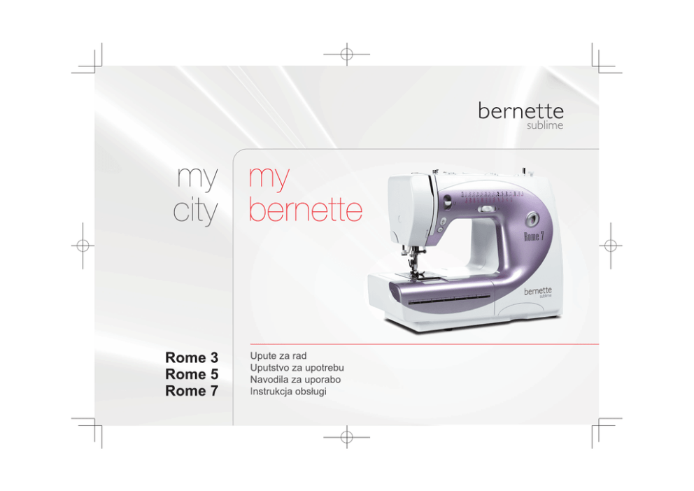 E55-E82e_Cover_HR_SR_SL_PL_310309:Titelbild bernette 31.3.2009 15:16 Seite 2 HR Napomena: U ovim uputama za rukovanje su opisana četri različita modela bernette. Sa gornje lijeve strane označeni su modeli sa crnom podlogom i stranice se odnose samo na njih. SR Napomena : Ovo uputstvo sadrži informacije za četiri različita bernette modela. Na vrhu, gore levo,na svakoj stranici, naći ćete modele zatamnjene crnom bojom,što znači da je odredjena stranica važeća za taj model. SL Pomni: Ta navodila vsebujejo informacije za štiri različne modele šivalnih strojev Bernette. Levo na vrhu vsake strani bodo črno povdarjeni modeli, na katere se trenutna stran nanaša. PL Uwaga: Niniejsza instrukcja jest przeznaczona dla 4 różnych serii Bernette. W górnej lewej części strony model maszyny zostanie wskazany na czarno. Jest to wskazówka, którego modelu informacja na stronie dotyczy. 31.3.2009 14:49 Seite 1 VAŽNI SIGURNOSNI PROPISI Kod korištenja jednog električnog uređaja moramo pripaziti na slijedeće osnovne sigurnosne mjere: Prije nego što počnete koristit stroj obavezno pročitajte sve sigurnosne mjere. Čuvajte ova uputstva za rad sa strojem na sigurnom mjestu u blizini stroja. Ako stroj morate dati u treće ruke, uvijek pazite da upute za rad budu predane sa strojem. OPASNOST - za obranu od električnog udara: 1. Šivaći stroj nemojte nikada ostavljati nekontrolirano stajati, tako dugo dok je spojena na električnu mrežu. 2. Nakon korištenja i prije čišćenja moramo stroj uvijek odstraniti iz električne mreže. 3. Prije izmjene žaruljice uvijek izvucite utikač iz utičnice. Koristite uvijek žaruljice istok tipa, preporučamo one od 12V/ 5W (220240V). UPOZORENJA - radi izbjegavanja opekotina, vatre, električnog udara ili ozljeđivanja osoba: 1. Osobe (uključujući i djecu), koja zbog psihičkih, mentalnih smetnji ili neiskustva, nisu u stanju stroj sigurno koristiti, morali bi ovaj stroj koristiti samo u prisustvu jedne odgovorne osobe. 2. Nemojte dozvoljavati da se stroj koristi kao igračka. Povečanu opreznost trebamo posvetiti kada su djeca u blizini ili da stroj ne koriste djeca. 3. Djecu morate nadgledati kako bi bili sigurni da se ne igraju sa strojem. HR 4. Stroj treba koristiti samo na naćin kako je to u ovom priručniku objašnjeno. Alat i pribor koji koristite, smije biti samo onaj koji preporučuje proizvođač i naveden je u ovom priručniku. 5. Nikada nemojte koristiti ovaj stroj u slučajevima kada je oštečena žica ili utikač, ukoliko stroj ne radi propisno, ukoliko je pao na pod i oštetio se, te ukoliko je pao u vodu. Stroj odvezite u najbliži ovlašteni servis gdje će biti stručno pregledan, popravljen te će se mehanički i električno podešen. 6. Nikada nemojte koristiti ovaj stroj ukoliko je bilo koji od zračnih izlaza blokiran. Pazite na to da su ventilacijski otvori šivaćeg stroja i nožne kontrole slobodni od nečistoća, prašine ili da se na njima ne skuplja slobodna prašina. 7. Držite prste podalje od svih pokretnih dijelova stroja. Pogotovo se treba pripaziti prilikom rada oko igle koja je umetnuta u šivaći stroj. 8. Koristite samo originalne ubodne pločice. Jedna kriva ubodna pločica može dovesti do puknuća igle. 9. Ne koristite zaobljene igle. 10. Za vrijeme dok šivate ne smijete tkaninu povlačiti ili trkati. to može dovesti do puknuća igle. 11. Šivaći stroj isključujemo (“O”) kod radova u području igle, kao npr. uvođenje konca, izmjena igle, izmjena donjeg konca, zamjena stopice ili slično. 12. Kod odstranjivanja poklopaca stroja, prilikom uljenja ili kod drugih radnji koje smo naveli u ovom priručniku, obavezno morate stroj isključiti iz naponske mreže. (izvucite mrežni utikač) 13. Ne stavljajte strane predmete u otvore stroja. 14. Šivaći stroj ne koristite u otvorenome. 1 E55-E82e_HR_SR_SL_PL_310309:07_55-90e_EN_ES_FR_PT.qxd E55-E82e_HR_SR_SL_PL_310309:07_55-90e_EN_ES_FR_PT.qxd 31.3.2009 14:49 Seite 2 HR 15. Šivaći stroj ne koristite na mjestima gdje se upotrebljavaju proizvodi poput sprejeva ili kisika. 16. Nikada nemojte stavljati nešto na nožni reostat. 17. Buka pod normalnim uvjetima iznosi manje od 70 dB. 18. Kako bi ugasili stroj, moramo glavni prekidač postaviti na “/” i izvuči utikač iz utičnice. 19. Kod razdvajanja utikača od utičnice moramo paziti da povlačimo za utikač a ne za kabel. 20. Ovaj stroj je duplo izoliran. Koristite samo originalne rezervne dijelove. Pogledajte uputstva za održavanje dvostruko izoliranih proizvoda. ODRŽAVANJE DVOSTRUKOIZOLIRANIH PROIZVODA 2 U dvostruko-izoliranom proizvodu, ugrađena su dva sustava izolacije umjesto uzemljenja. Nikakva sredstva za uzemljenje nisu pripojena dvostruko-izoliranom proizvodu, niti se takva sredstva za uzemljenje trebaju pripojiti proizvodu. Održaanje dvostrukoizoliranih proizvoda zahtijevaju izuzetan oprez i znanje o sustavu i treba biti obavljeno samo od strane kvalificiranog servisnog osoblja. Rezervni dijelovi za dvostruko-izolirani proizvod moraju biti istovjetni s dijelovima u proizvodu. Dvostruko-izolirani proizvod je označen riječima "DOUBLE INSULATION" ili "DOUBLE INSULATED". Ovaj znak može također biti naznačen na proizvodu. UPUTE ZA RAD PAŽLJIVO ČUVAJTE Ovaj šivaći stroj je određen za korištenje samo u domačinstvu. BERNINA posvecuje veliku pažnju na zaštitu svijetskog okoliša. Mi se zalažemo za stalno povecanje dijelova u našim proizvodima koji odgovaraju zaštiti okoliša na taj nacin da neprekidno napredujemo u proizvodnoj tehnologiji. Električne uređaje ne bacajte u smeće za kučanstvo nego u za to predviđena odlagališta. Kada se nekontrolirano odbacuju električni uređaji, štetne tvari mogu lako odlaziti u zemlju i zatrovati podezmne vode i time dugogodišnje zatrovati floru i faunu. Ako kupujete novi uređaj onda je prodavač zadužen za sigurno i bespaltno odlaganje vašeg starog električnog uređaja. (Ta se odredba ne odnosi na sve zemlje. Raspitajte se o prop